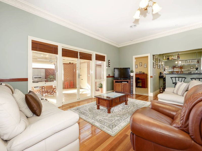 Presenting this stunning federation testament built to exact standard thanks to renowned local builder, Keogh Homes. Sumptuous appointments feature throughout from the feature lead light at the entrance and include 10 foot ceilings, ornate detailed fittings and even a reproduction cast fireplace with mahogany mantle. The master bedroom entails ensuite, while both bathrooms offer tessellated tiling and period correct vanities with main featuring a claw foot bath. While there is also a large formal lounge, an open plan living room is lavished with gorgeous battened Tasmanian oak solid timber flooring. The central matt finished vinyl wrap kitchen offers upgraded appliances including dishwasher and adjoins a meals room, while the separate built in wet bar this whole room. Ducted heating and refrigerated cooling take care of the elements all year around, while there is also a ducted vacuum. Entertain in complete comfort from the enclosed pergola complete with mains gas BBQ, wood fire heater and weather blinds. An oversized double garage offers remote access and outdoor WC, while there is also private rear access ideal for that boat or caravan, yet there is still an abundance of space for the kids to roam thanks to the 900m2 plus allotment. Finished with select colourbond roofing there is also a 1.5 Kilowatt solar energy system to keep your power bills down. The attention to detail throughout is stunning and a gorgeous example of what fine homes used to be. Set in the illustrious River Sanctuary estate the location is just as stunning.
