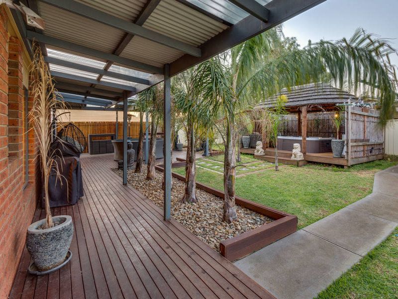 Outdoors an absolutely stunning Balinese themed backyard with decking and a spa sanctuary perfect for entertaining guests!