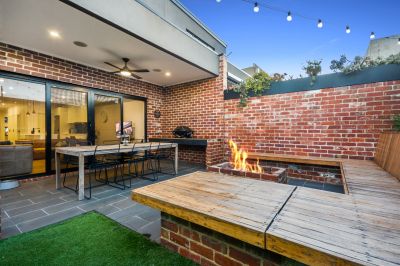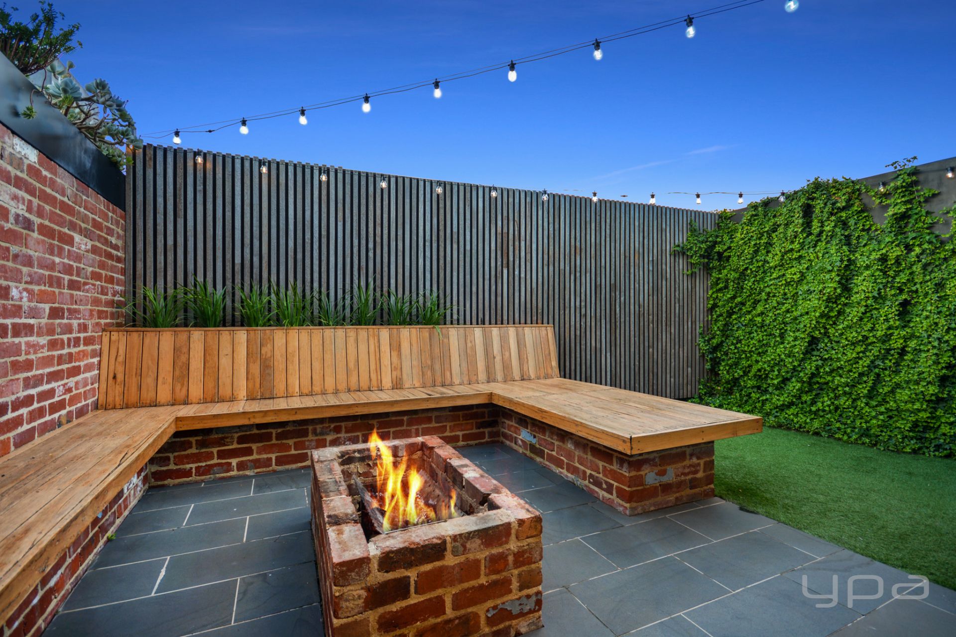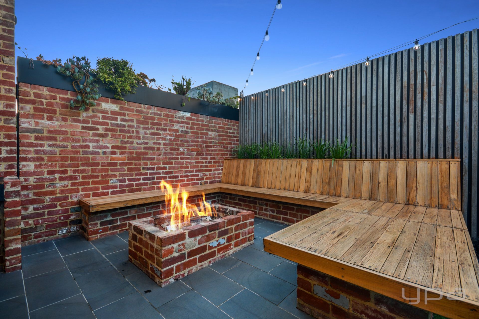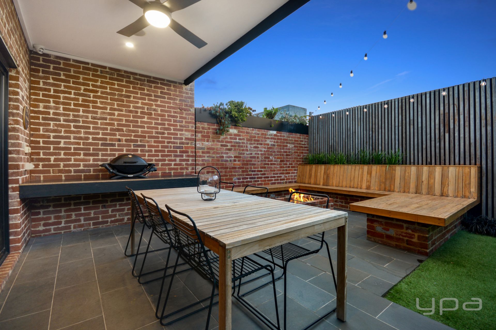 • Covered outdoor entertaining area with built in bench seating around a fire pit