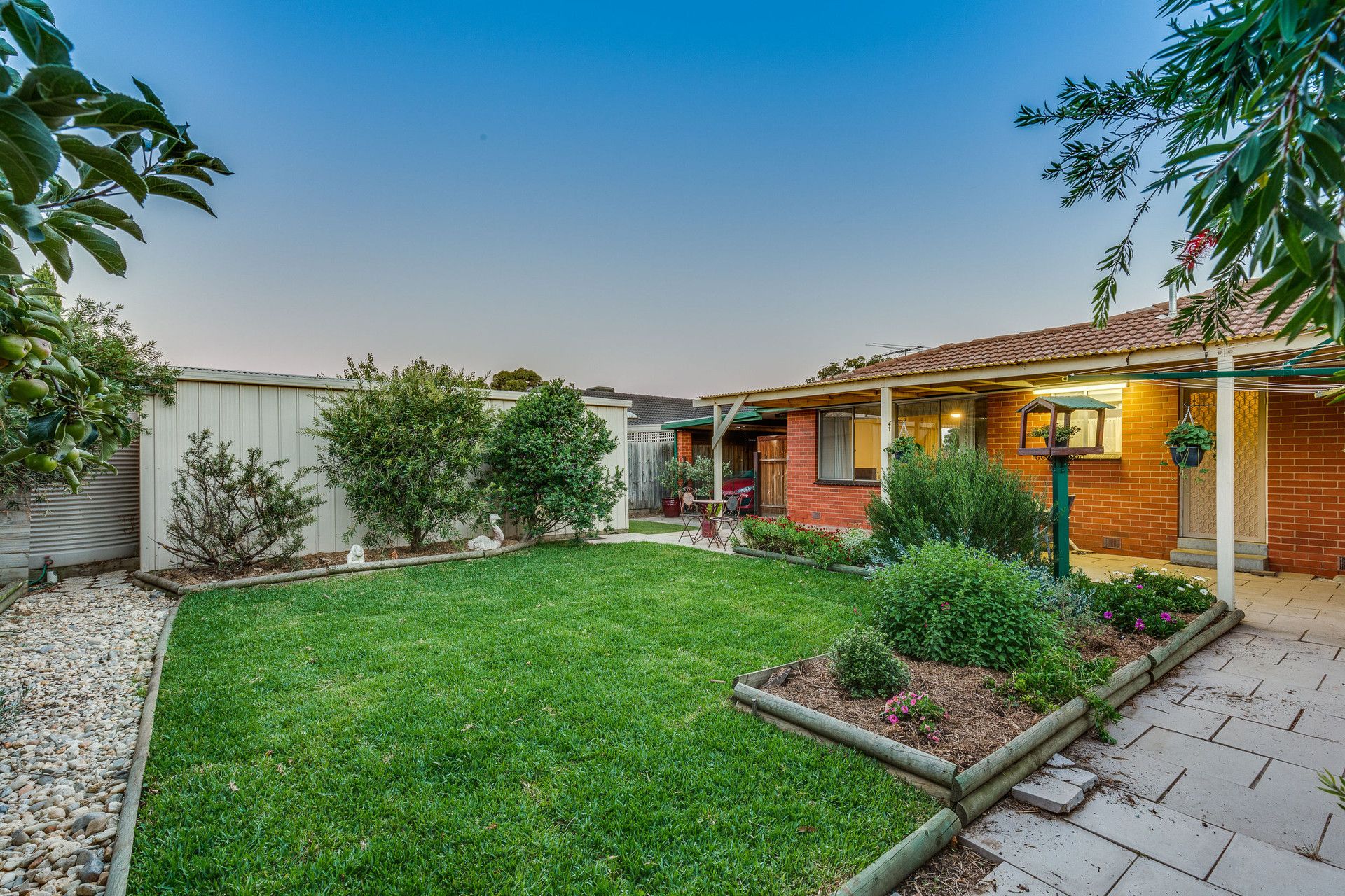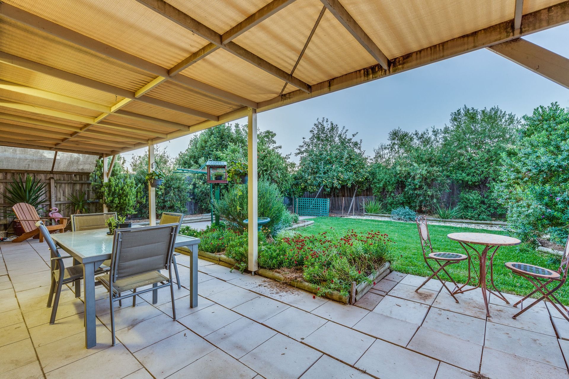 Extra features include: Outdoor offers a fantastic entertaining area overlooking the established gardens and array of fruit trees and single carport with roller door.