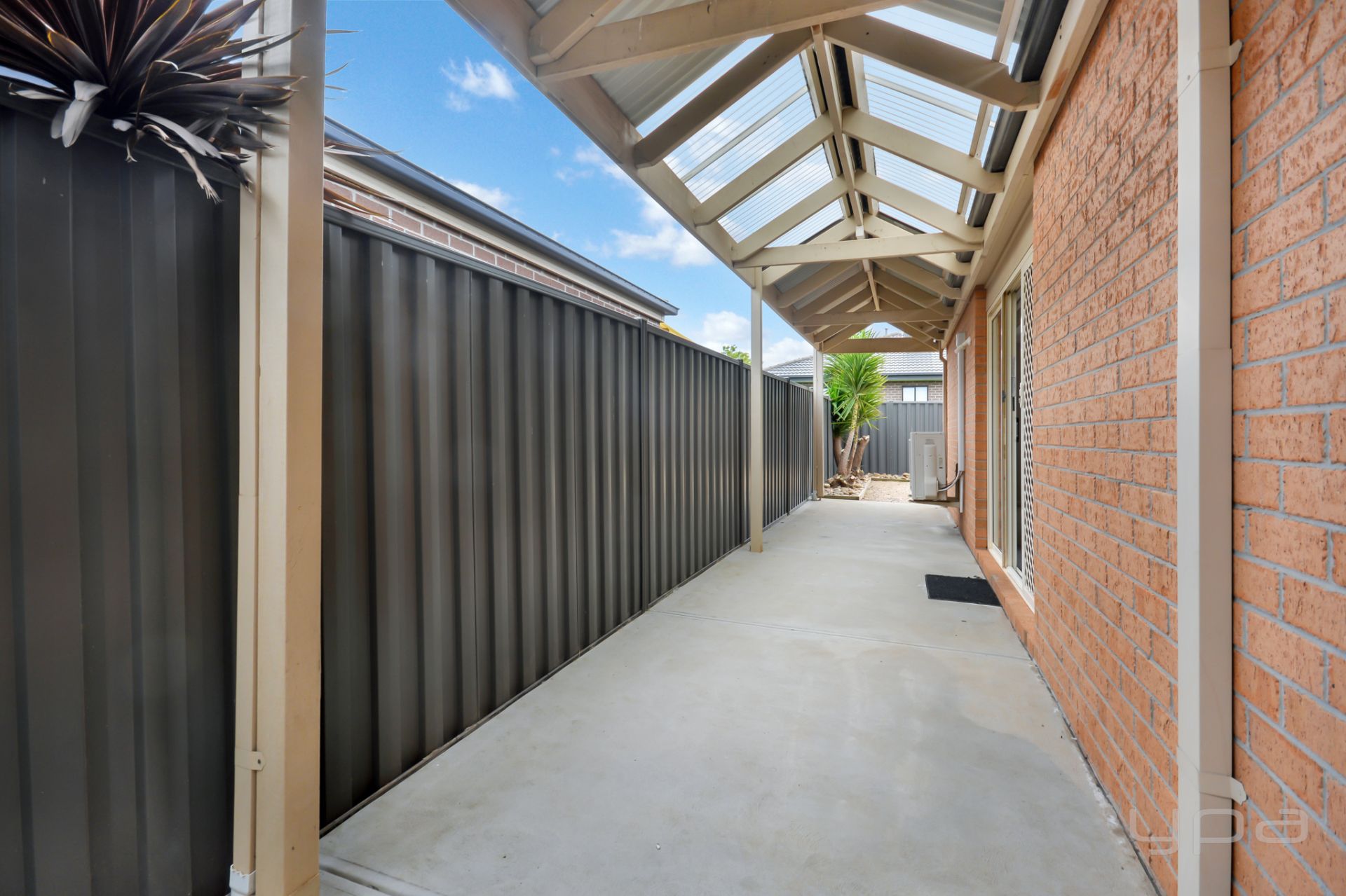 •Outside offers covered pergola and double lock up garage on remote with internal access