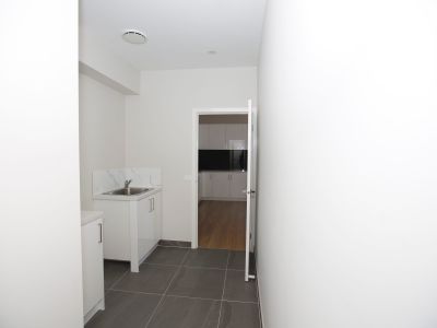 A kitchen with stainless steel appliances & dishwasher and seperate powder room and laundry