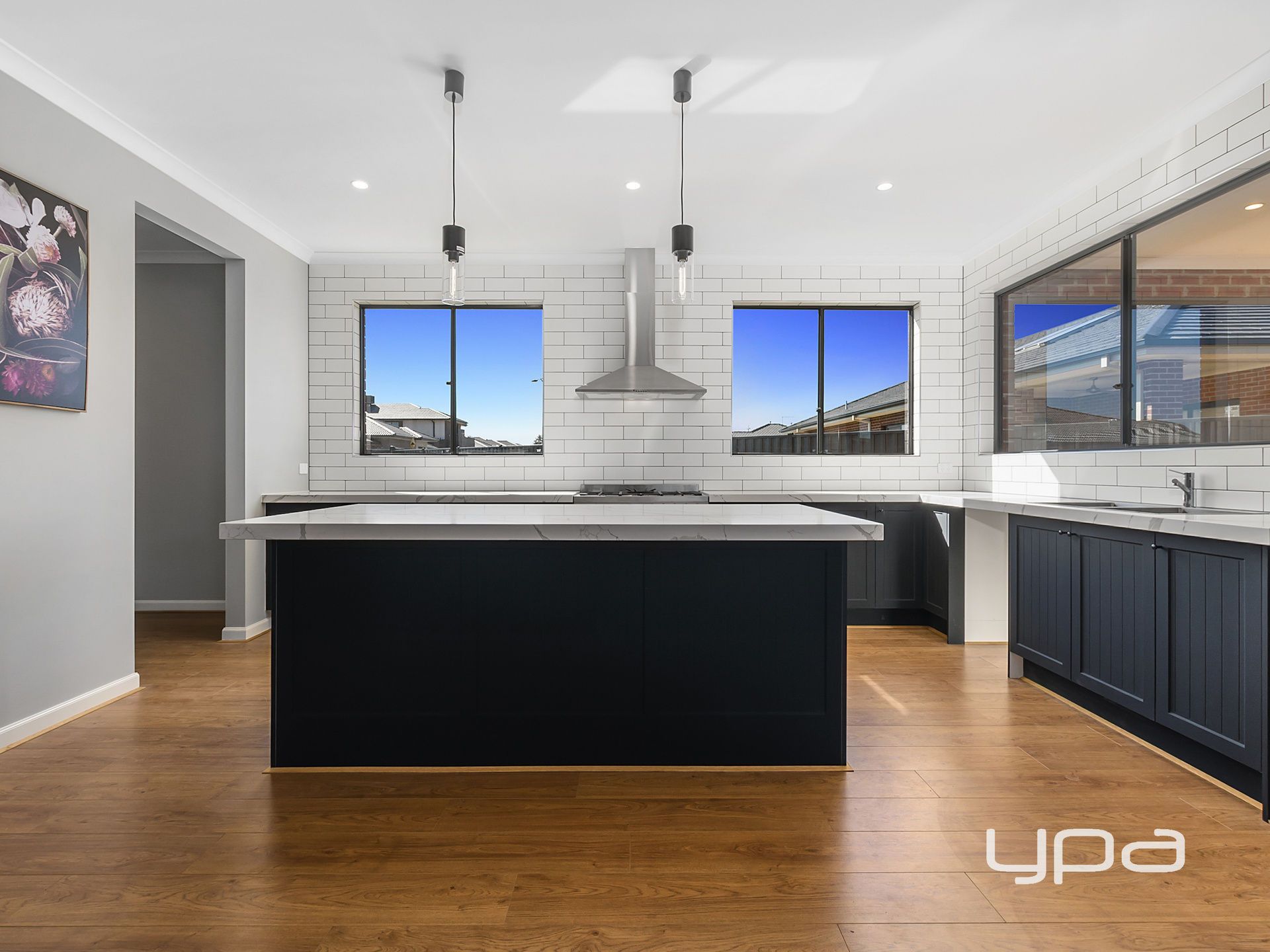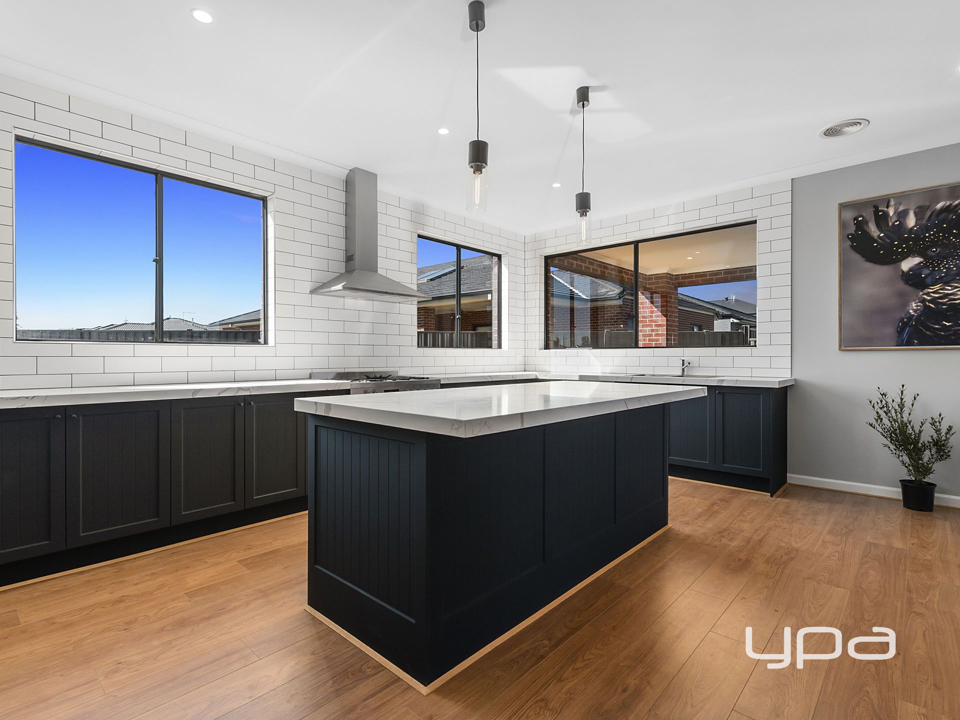 The ground floor of this residence is welcomed to a down stairs front lounge area, guest bedroom with walk in robe, oversized walk in linen storage, large laundry with extra intergrated storage, third full bathroom, home theatre room, front lounge area, elite modern kitchen with walk in butlers pantry, stone benches and 900mm stainless steel appliances.