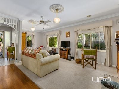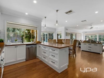 As you enter this beautifully presented home with light and bright living areas, you will notice the inherit quality within. It is privately positioned in a very quiet court with other quality homes. Features include 4 bedrooms, master with ensuite and WIR and BIR's in two of the remaining bedrooms. There is a large lounge area with cornices and ceiling roses. The home has feature timber laminate flooring throughout and ducted heating and cooling for year round comfort as well as a large Coonara wood heater perfectly located in the open plan living area. The upgraded kitchen has a large amount of bench space and plenty of cupboards with quality appliances. This overlooks the large sitting and dining area with views of surrounding areas and with access to the undercover patio with decking through a glass slider. The home has a central bathroom with customised timber vanity with bath, shower and separate toilet. Outside are beautiful established gardens with plenty of grassed areas including bird aviary and vegie patches. There is also a large studio that could double as a home office/extra accommodation, large double remote garage with room for a workbench. With so much more to offer book an appointment today, you will not be disappointed