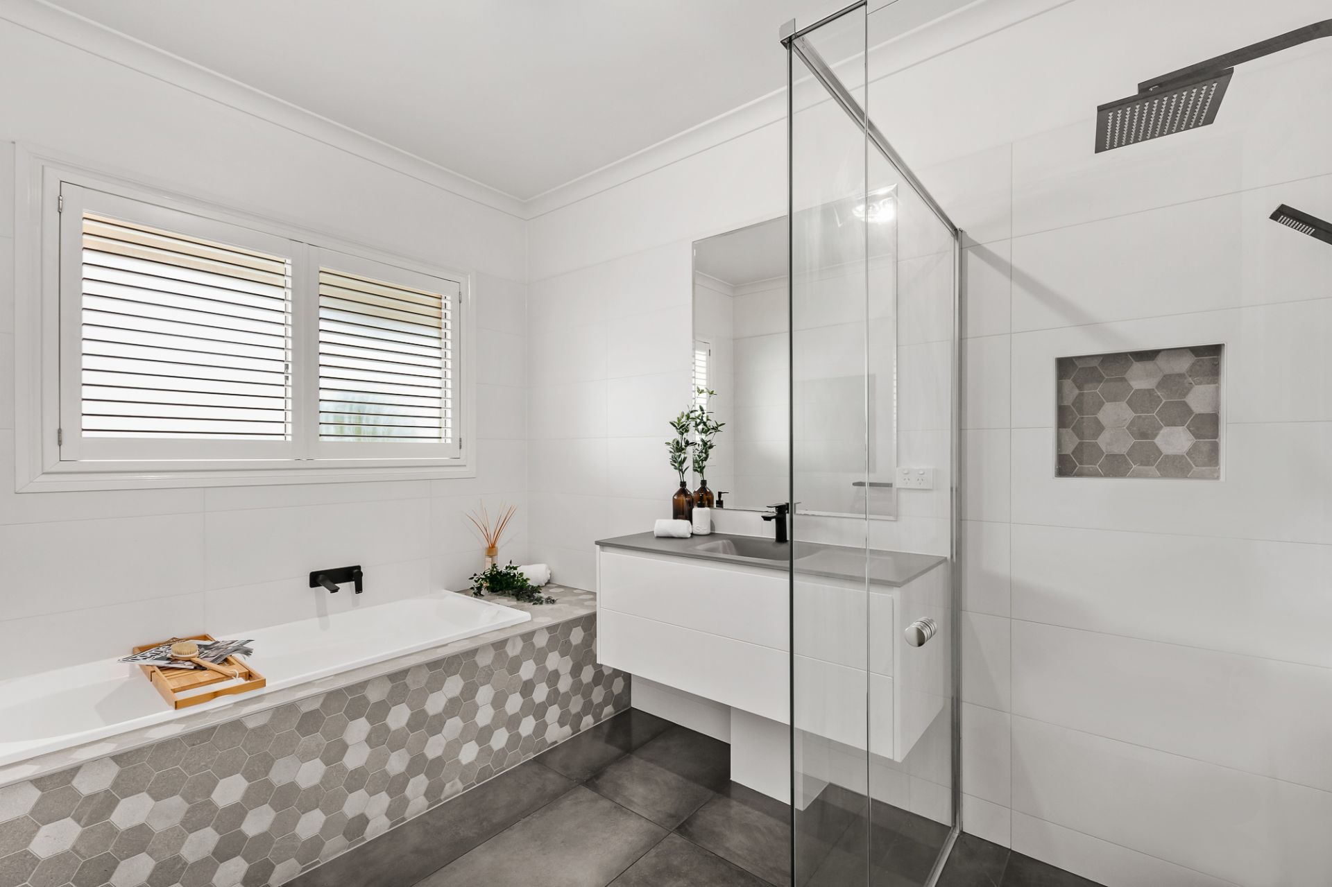 Presenting; Master bedroom with a huge his-hers walk in robe, enormous en-suite with a walk in shower & a magnificent spa bath. Three other generous sized bedrooms all with built in robes, modern central bathroom & a study with built in robes.