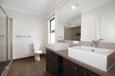 Located on The Esplanade in the heart of Caroline Springs, lies this immaculately presented double storey stunner is sure to impress. Comprising of three spacious bedrooms (master with full en suite including double basins, walk in robe and private balcony, remaining bedrooms with built in robes), bright central bathroom with separate bathtub, upstairs retreat and so much more. Large kitchen includes ample cupboard space, dishwasher, 900mm upright stainless steel oven and caeser stone bench tops which overlooking the meals/family domain. Complete with two reverse cycle split systems, high ceilings, alarm system, low maintenance gardens, double remote lock up garage and all located within a very short distance stroll to all amenities in which Caroline Springs has to offer such as Caroline Springs Square Shopping Centre, Caroline Springs lake, public transport, gorgeous park lands and much more!