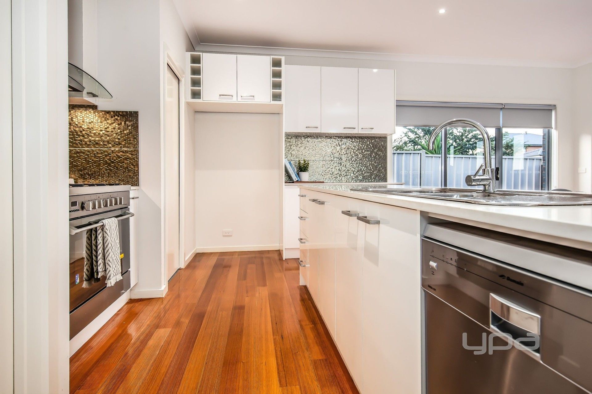 Kitchen complete with first class stainless steel appliances, 900mm gas cook top, electric oven, dishwasher, Caesar stone bench tops and walk-in pantry