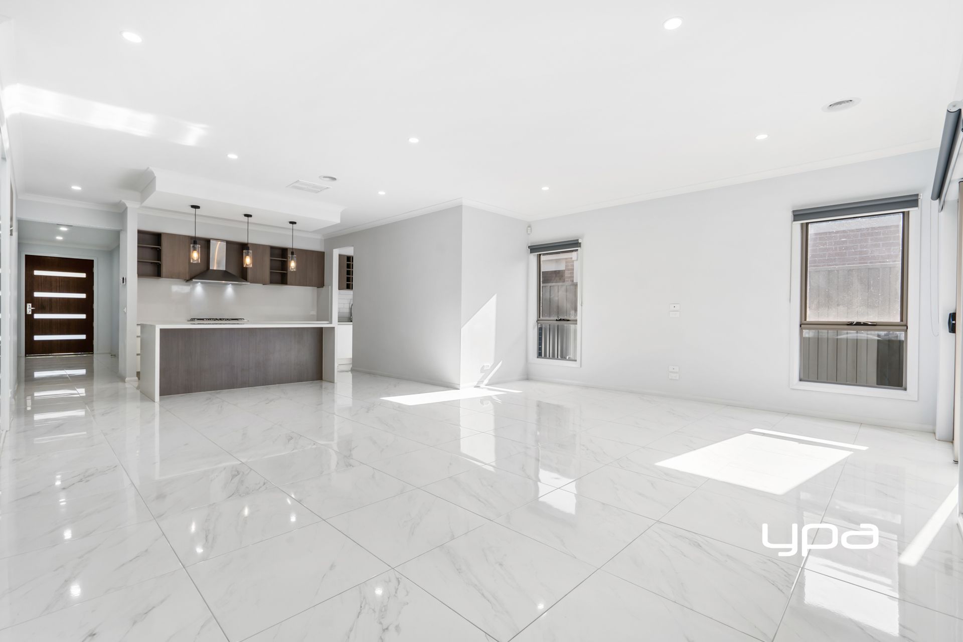 • Open plan kitchen which includes first class stainless steel appliances, 900mm gas cook top, electric oven, ample cupboard space and 40MM Caesar stone bench tops with waterfall feature.