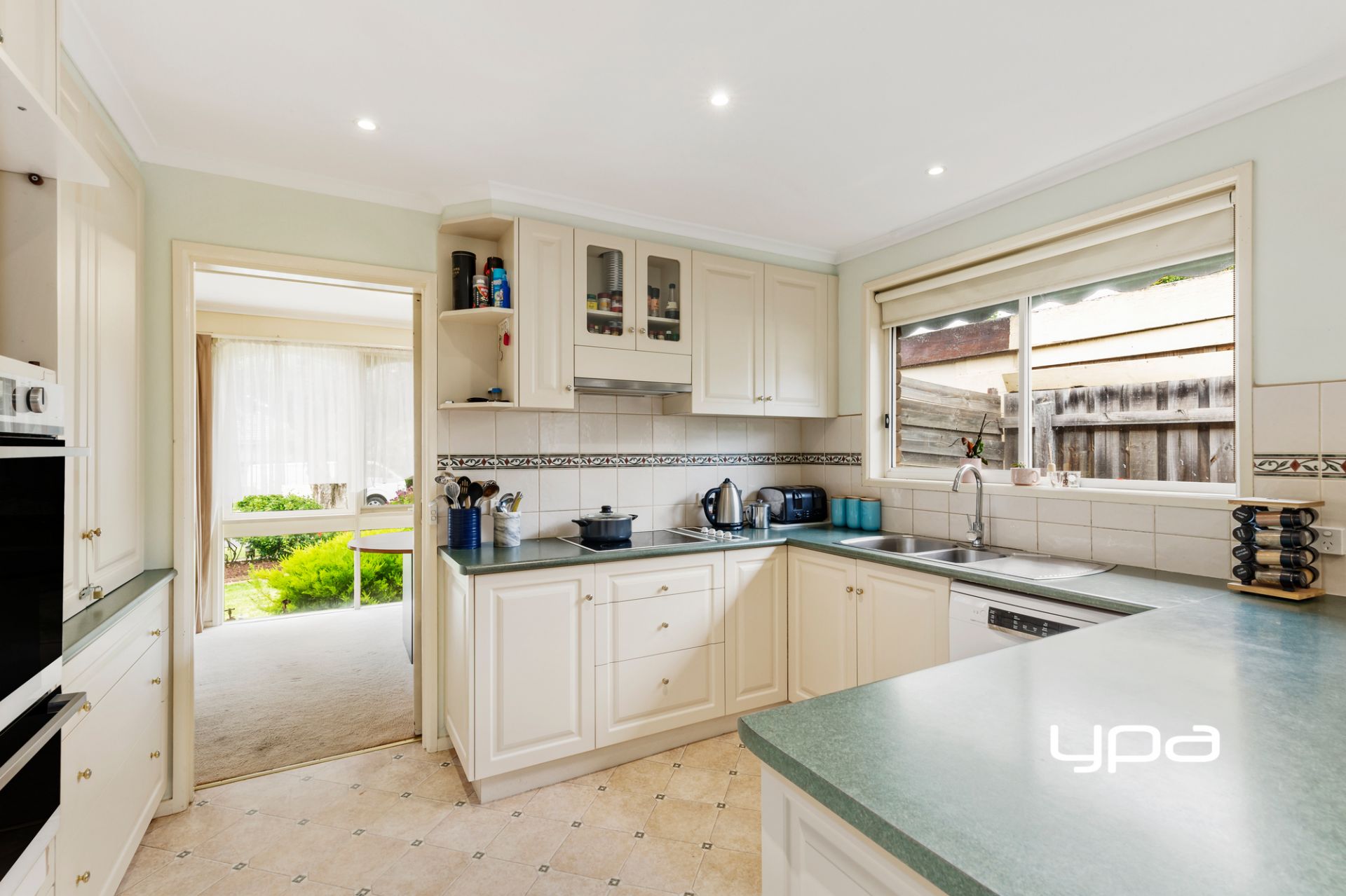 • Kitchen equipped with ample cupboards, electric cooktop, rangehood and oven