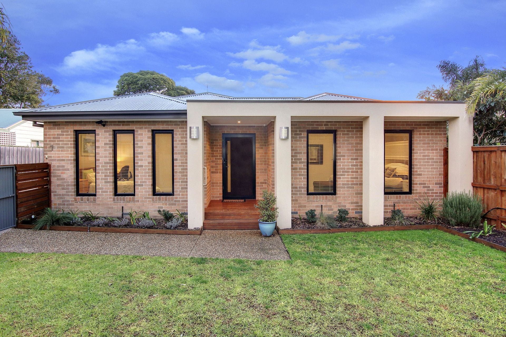 Striking, modern facade coupled with bright, welcoming living zones