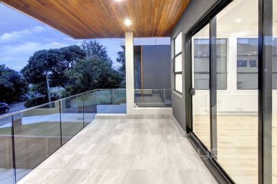 Several tiled balconies plus alfresco area featuring spotted deck with merbau plinth boards, accessed via glass sliding doors off the living areas