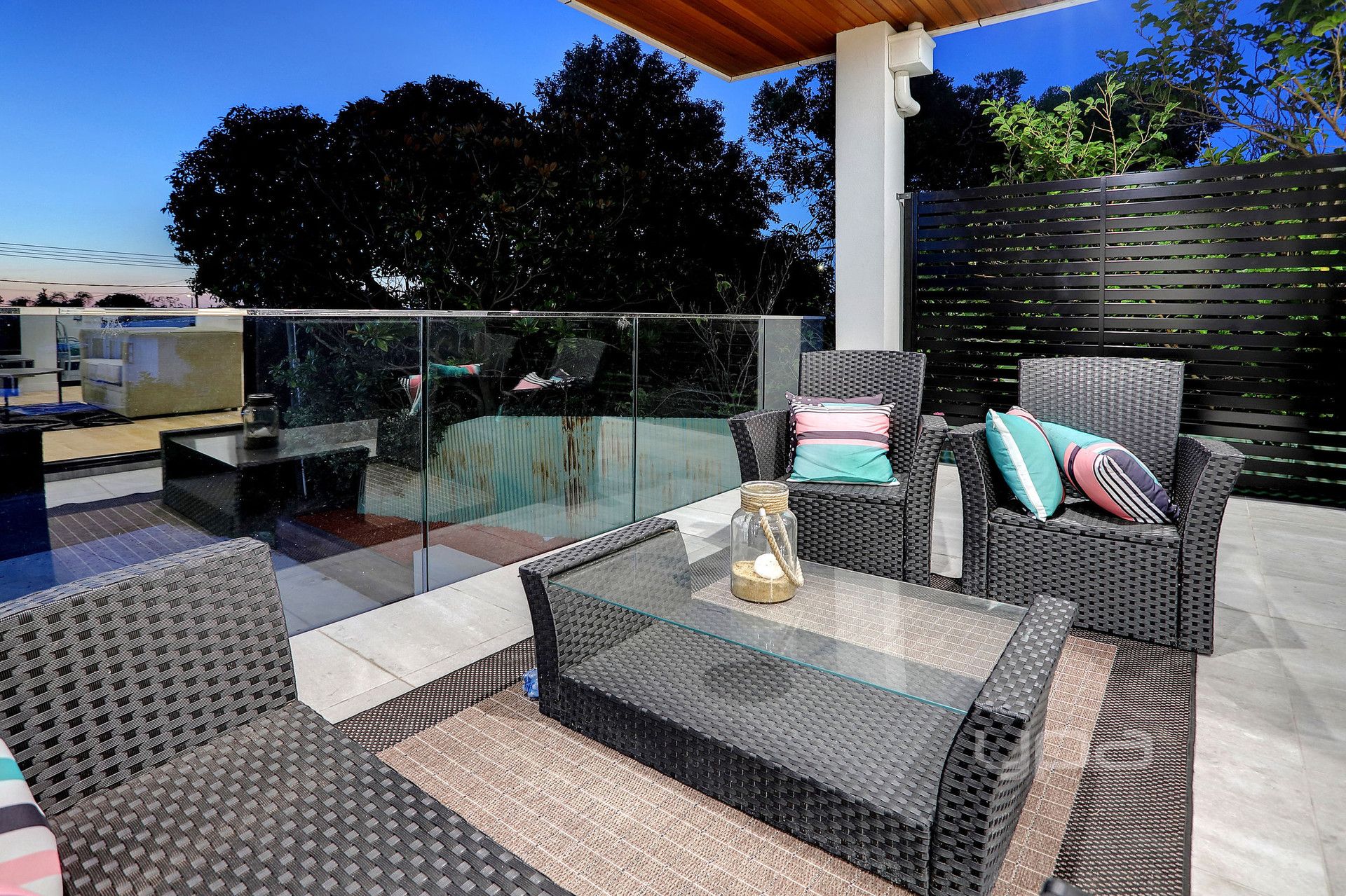 Several tiled balconies plus alfresco area featuring spotted deck with merbau plinth boards, accessed via glass sliding doors off the living areas