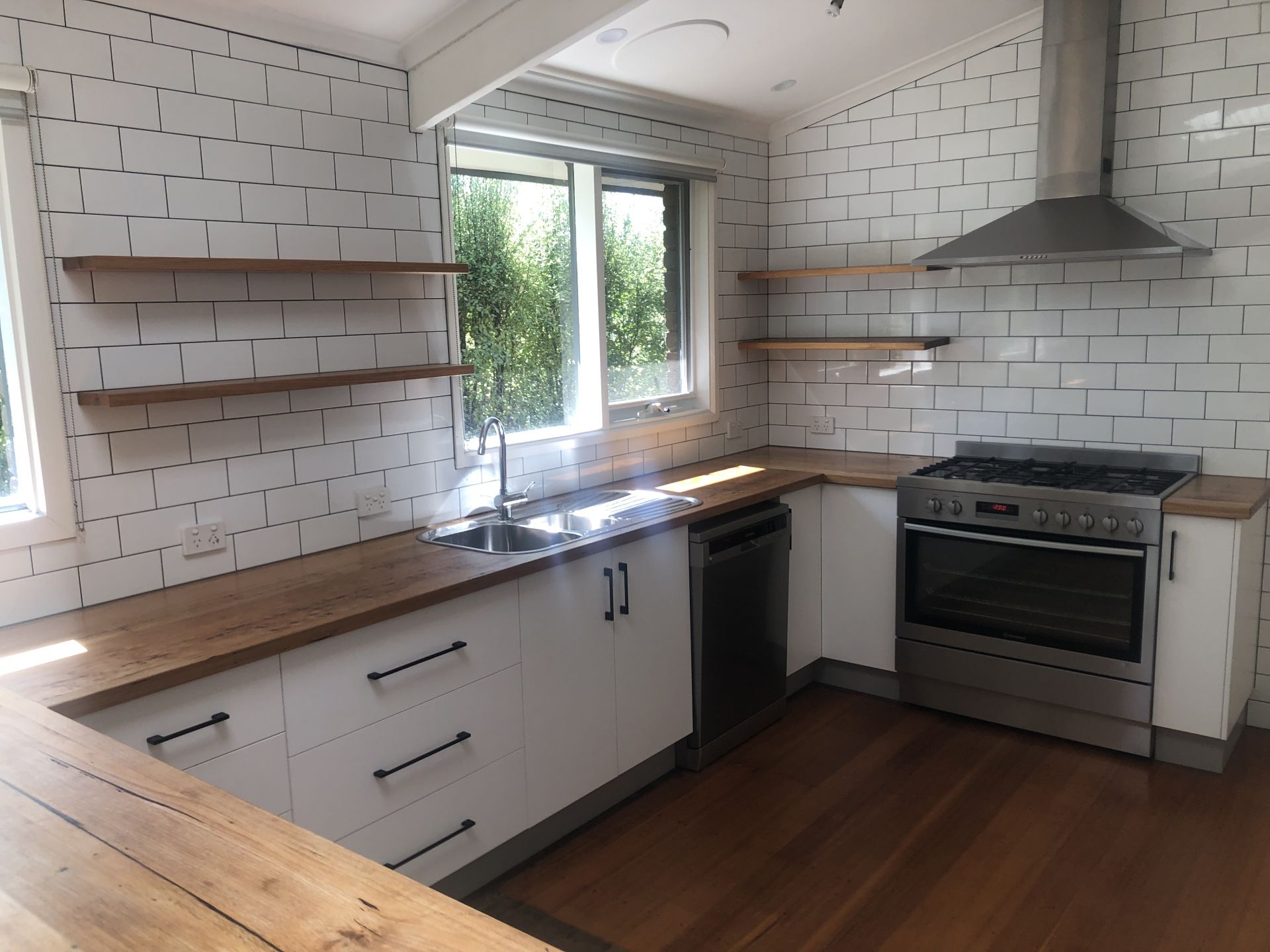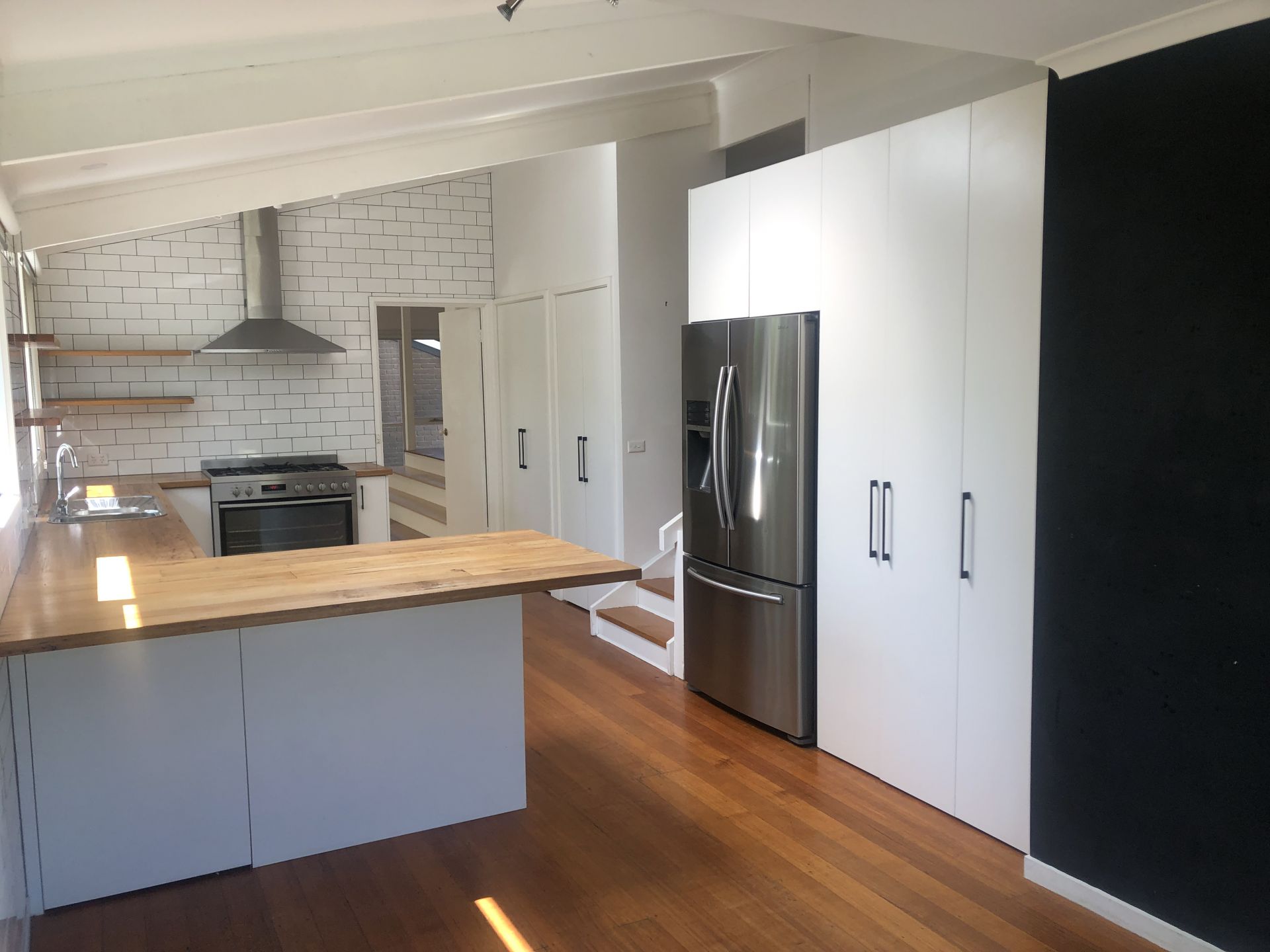 - Light filled Kitchen with dishwasher, 5 burner gas cooktop and abundant storage cupboards.