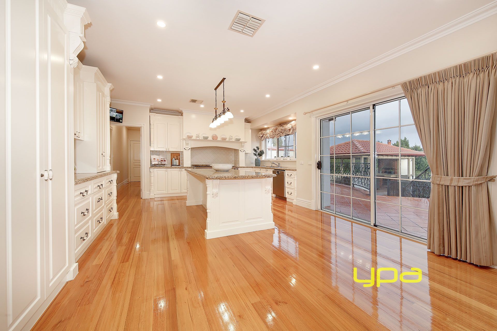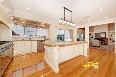 A spacious entry foyer welcomes you to an inviting gracious sitting room with high ceilings. Leading to a stunning dining room, well-appointed kitchen boasting quality modern appliances and ample cupboard space with granite stone bench top and custom made appliance with double oven. Adjoining is the spacious meals area, a large relaxed family room with open fire place with cathedral ceilings.