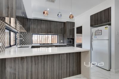 Walk in and be impressed by the expansive floorplan which includes a theatre room and a spacious lounge room that opens up the large open plan chefs kitchen including a caesar stone bench tops, quality stainless steel appliances and a butlers pantry all overlooking the meals and family area.