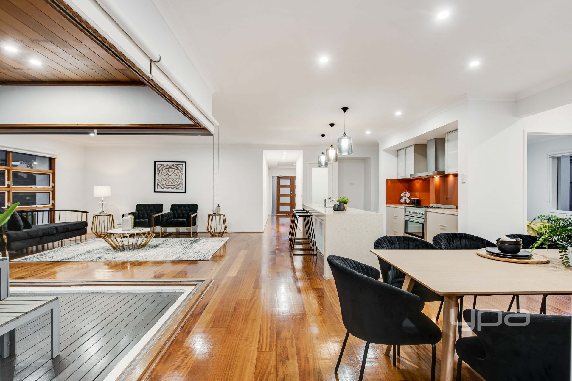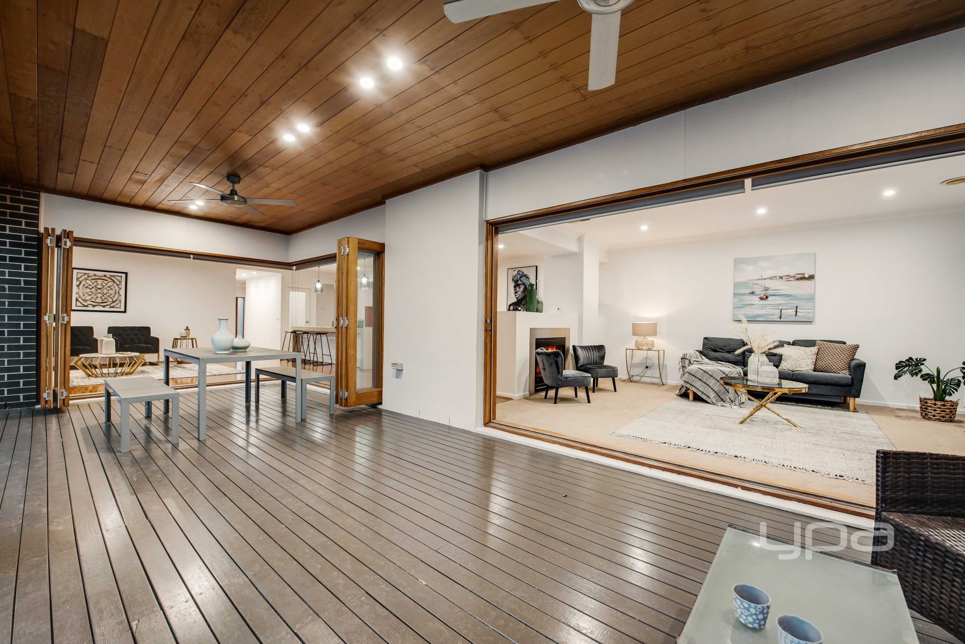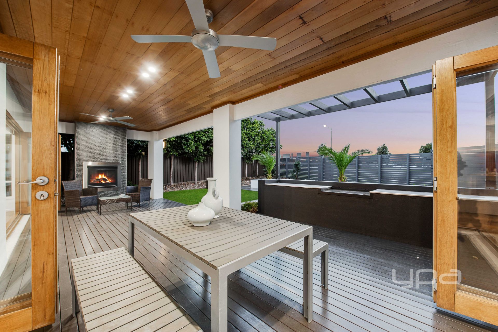 -Relaxing enclosed alfresco entertaining area with Gas fire place adjoining to a large rear yard