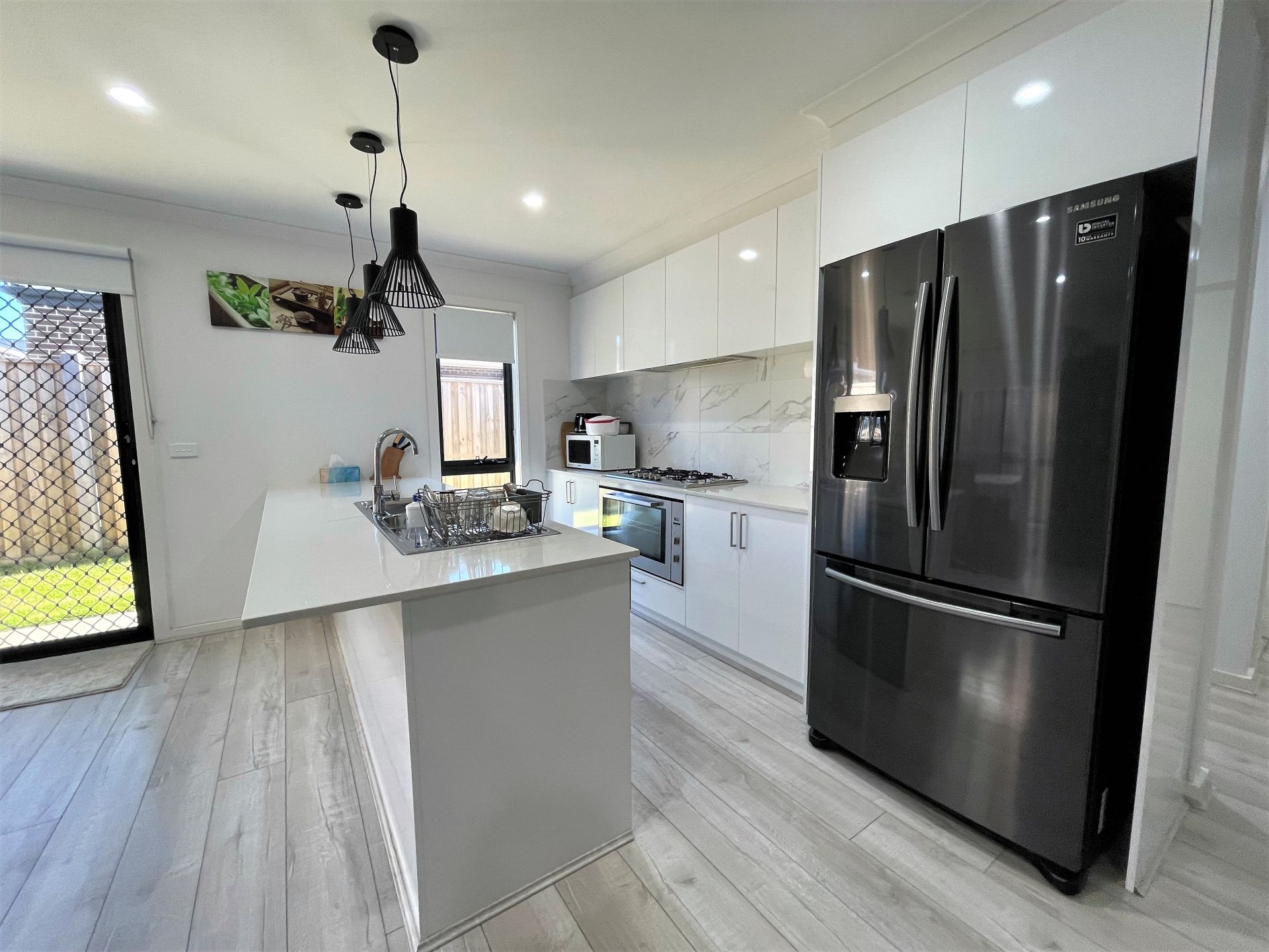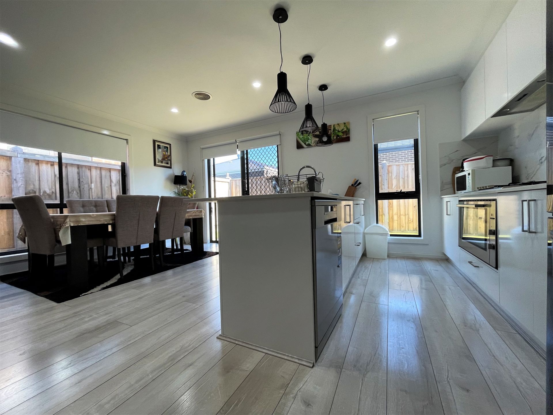- Open kitchen/meals area with stone bench top and ample cupboard space