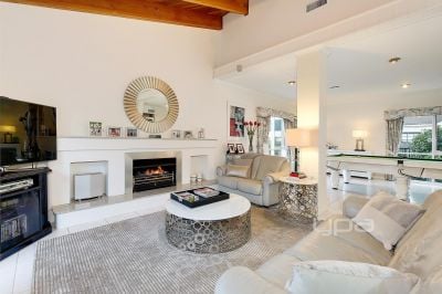 Overlooking this, an expansive meals and family area that epitomises luxury living, from gas log fireplace to the feature cathedral ceiling and added surround sound system.