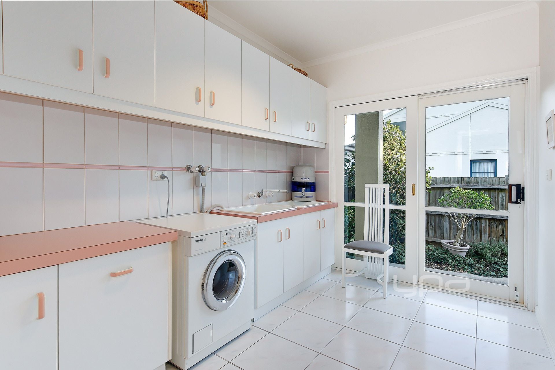 Continue through to impeccable designer kitchen filled with natural light and adorned with granite benchtops and fitted with Miele appliances including dishwasher and double oven.