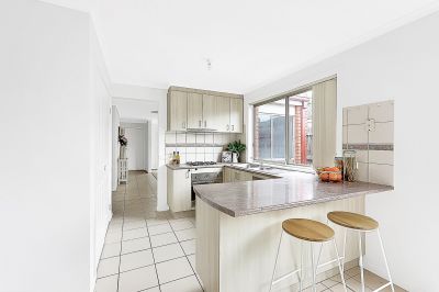 -Bright kitchen with tiled meals area