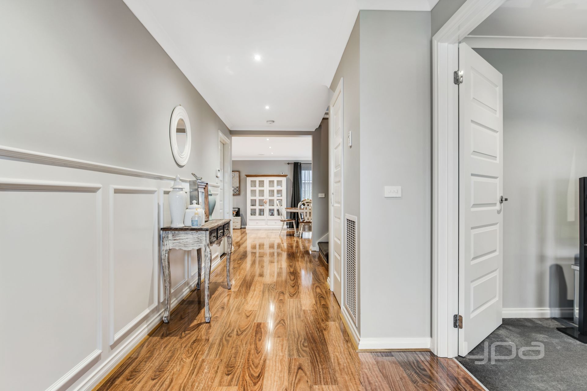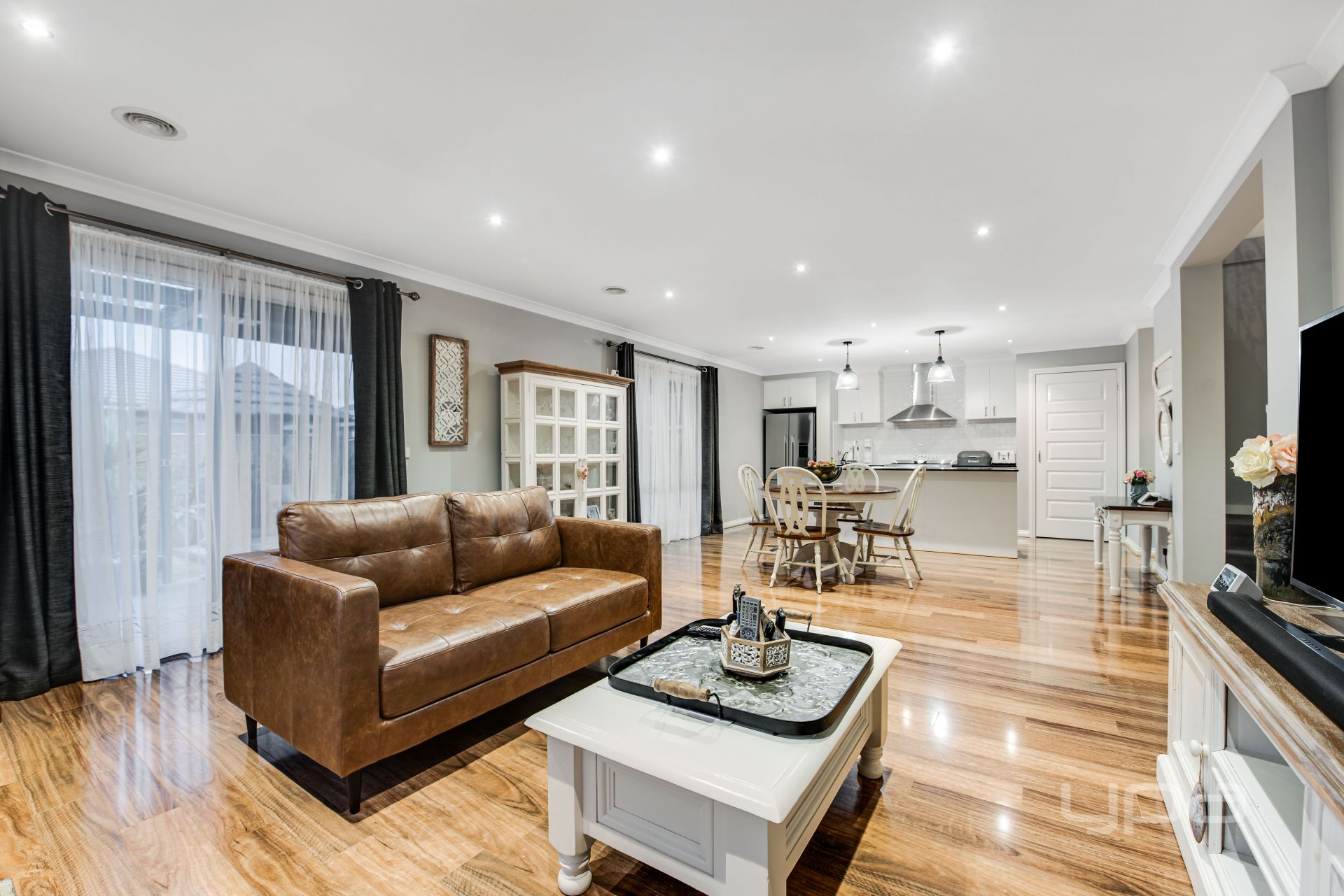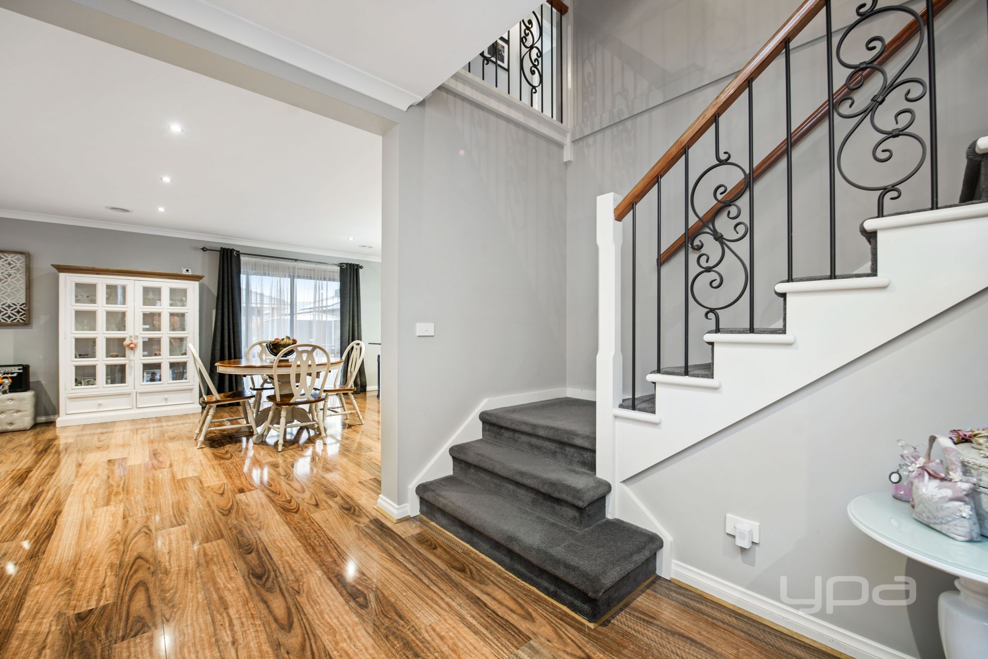 Instantly impressive from the moment you enter with a lengthy wide hallway, and polished upmarket laminate flooring, flowing to the heart of the home, a bright gourmet kitchen with sleek black stone benchtops, subway tiled splash back, s/s appliances, integrated dishwasher & microwave, WIP, and island overlooking the spacious open plan living/meals area. The first level also comprises of a separate formal lounge, powder room, full-sized laundry and external access to the backyard.