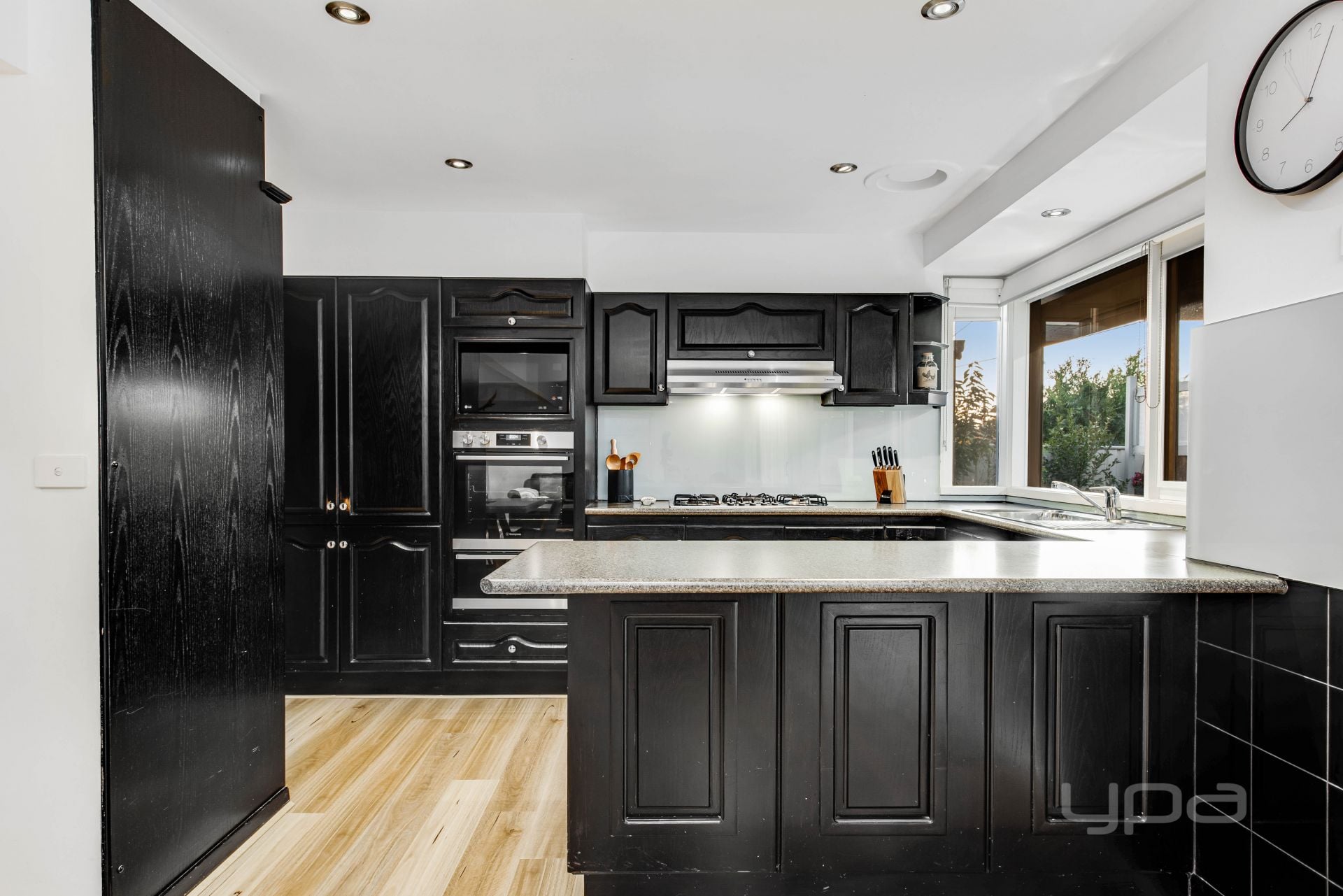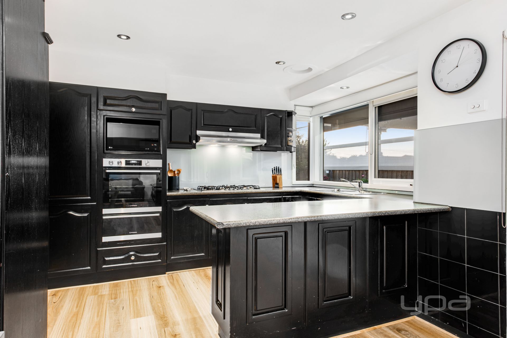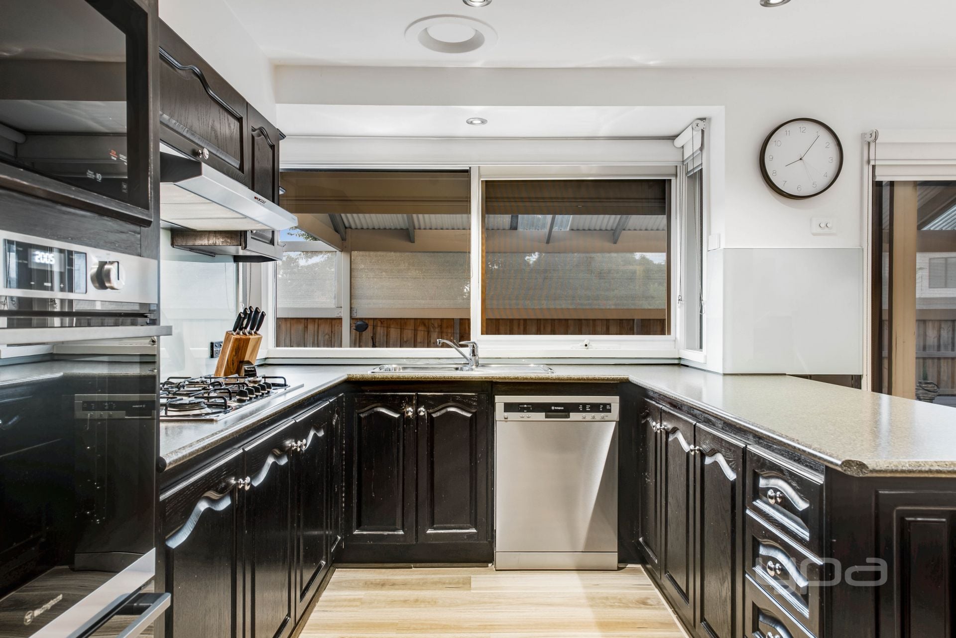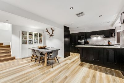 Ground floor there is French provincial influencers at every viewpoint. From the engineered wood flooring to the sleek updated kitchen with s/s appliances, built in microwave, oven and grill, stone benchtops, glass splash back and an abundance of cabinetry. Bright, spacious, and comforting are hallmarks of the graceful open plan living/meals area allowing access to the adjoining undercover alfresco, offering the perfect amount of space for family barbeques and entertaining guests.
