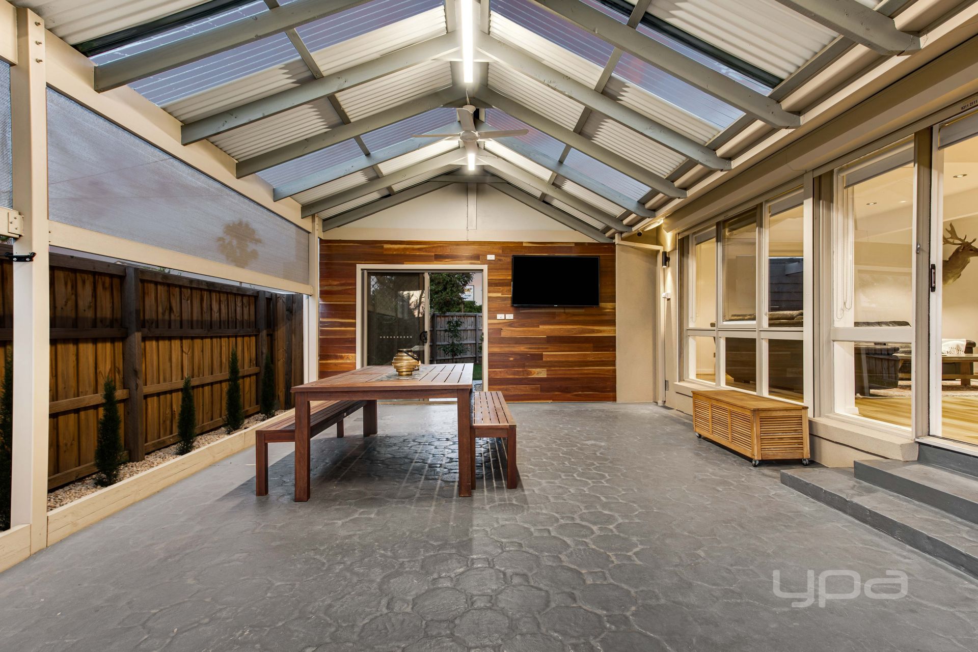 The yard itself provides proportions of neat and tidy artificial grass, ideal for children and pets to freely play about and even a veggie patch area for a gardening enthusiast or to simply grow your own produce.