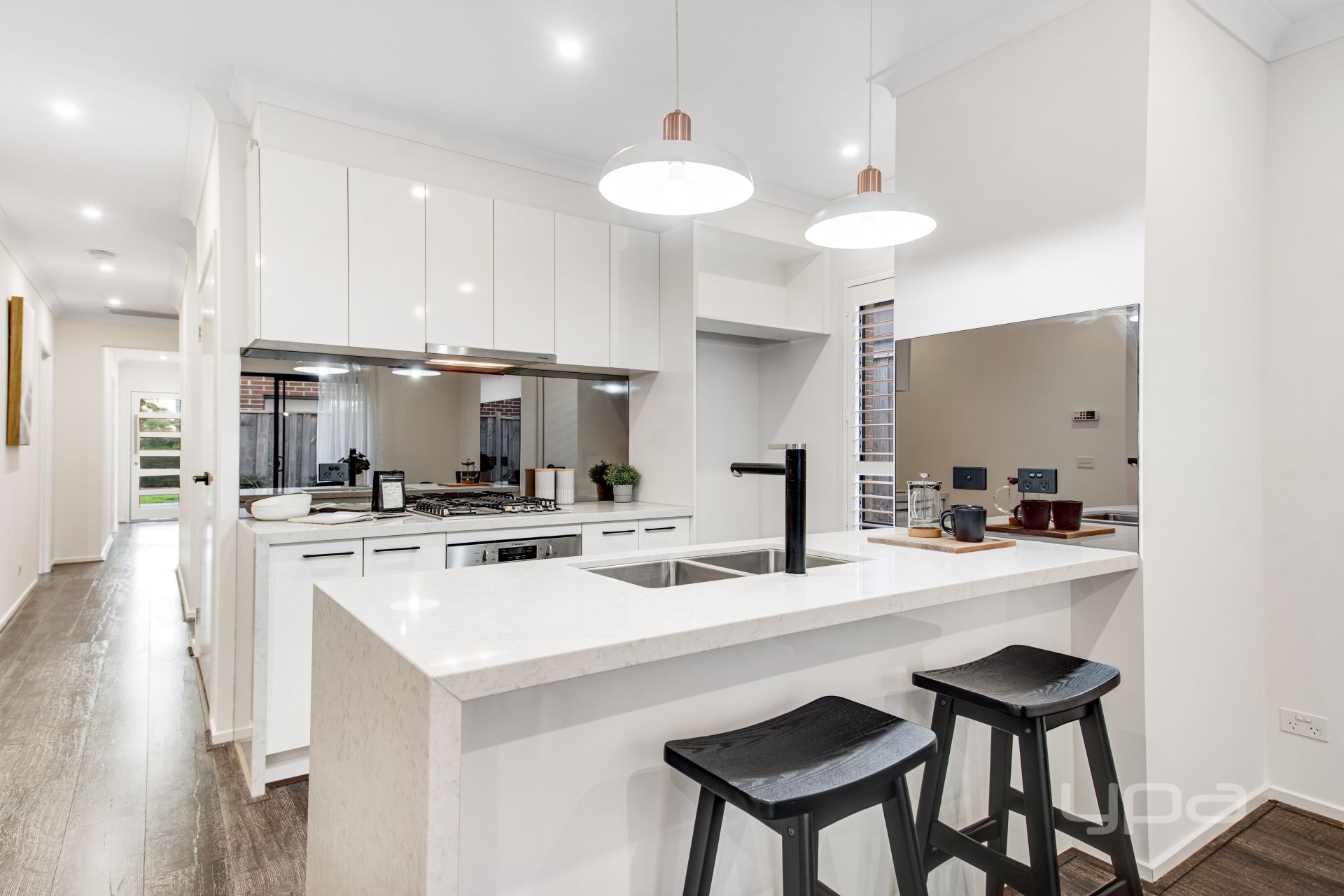Master bedroom upon entry offering full sized ensuite and WIR, 2 additional bedrooms with BIR, serviced by the modern bathroom and separate WC. This great single level layout provides an abundance of natural light streaming through the living/meals area in conjunction with the well-appointed kitchen complimented by stainless steel appliances, integrated dishwasher, 40ml marble styled bench tops, built in pantry, mirrored splash back and stunning pendants above the island, providing that extra luxury feel.