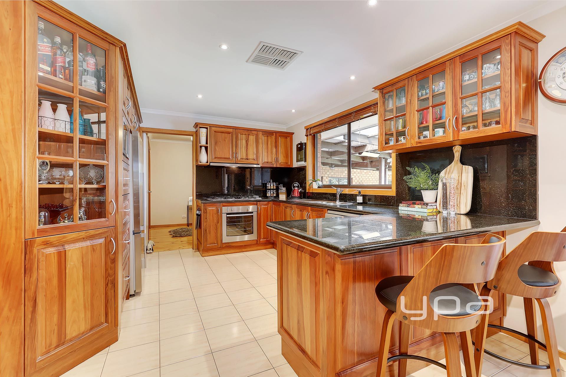 • At the hub of the home, is the gourmet timber kitchen featuring opulent Granite bench tops with equivalent splashbacks, quality stainless steel appliances, including Smeg 900mm gas cooktop and Westinghouse underbench gas oven plus dishwasher, together with a sizeable breakfast bar/bench perfect for meal preparation.