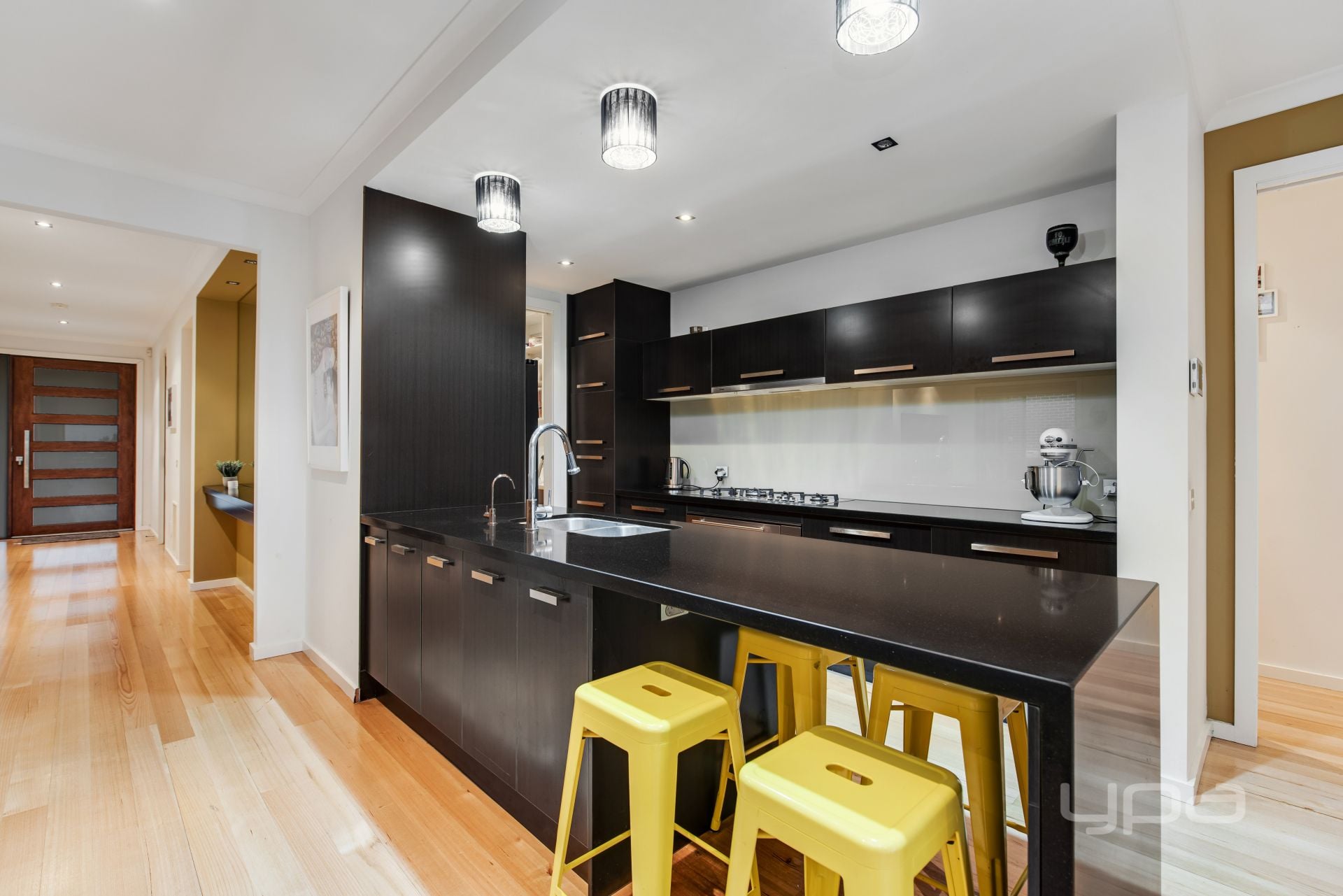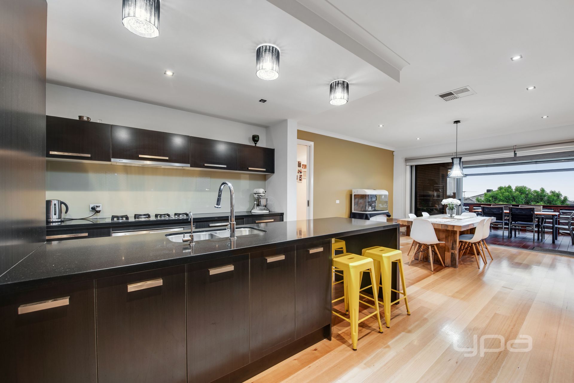 • Modern kitchen with quality, stainless-steel appliances, stone bench tops,