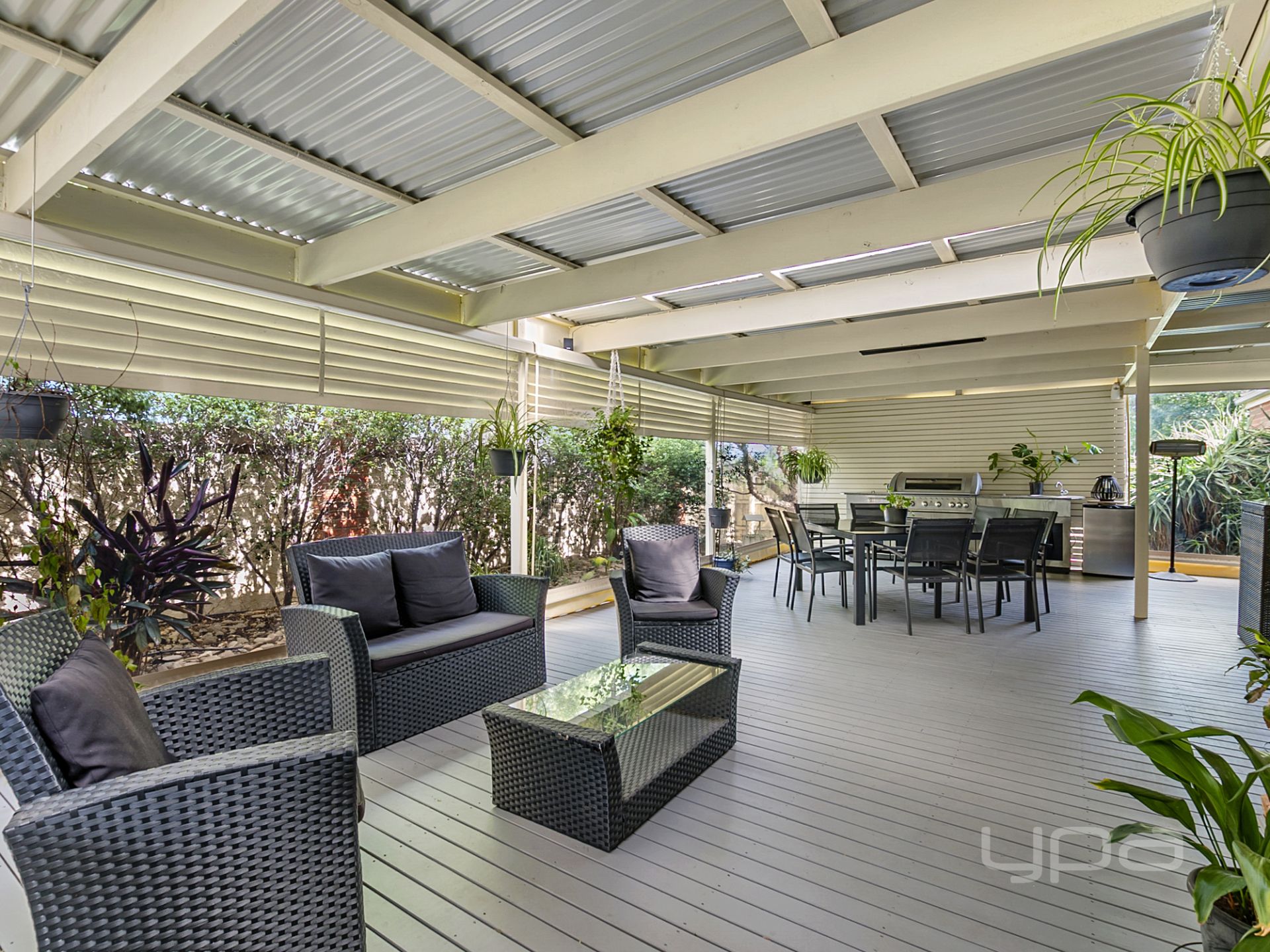 If the inside of this wonderful home isn’t enough, there is also a huge amount of space outside. Stepping out from the open plan living into the perfect decked pergola enclosed by quality bistro blinds and featuring stainless steel barbeque with natural gas and water connections. Following the timber decked path around the backyard, you will discover multiple sheds, vegetable gardens, lush green grass surrounded by established trees and an additional enclosed pergola.