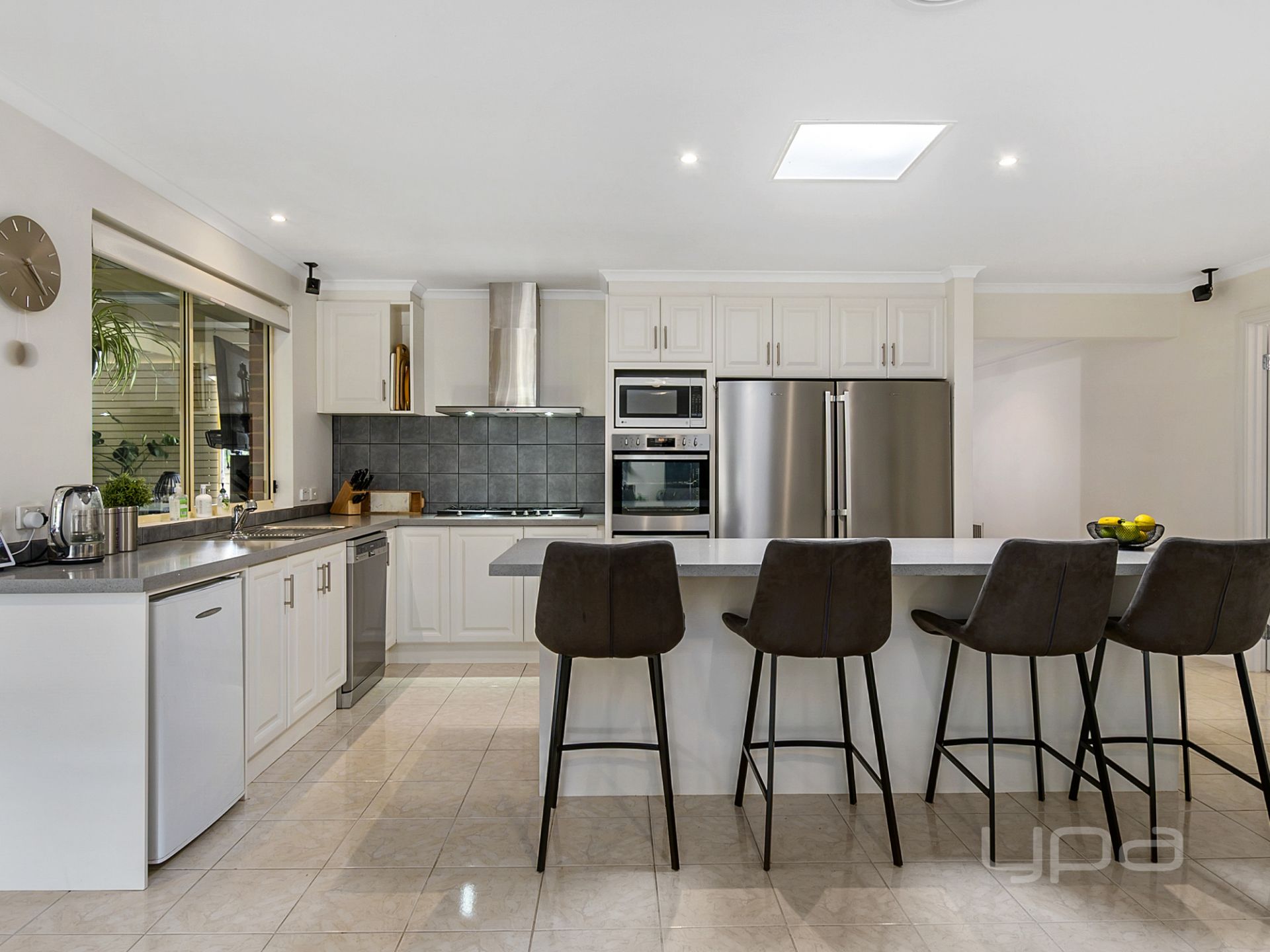 Further special features of the property include: side access with electric gate, decorative cornicing, upgraded skirting, high-quality curtains, high ceilings, ducted heating, evaporative cooling, surround sound, solar panels, skylight, irrigation system, security cameras and much more.