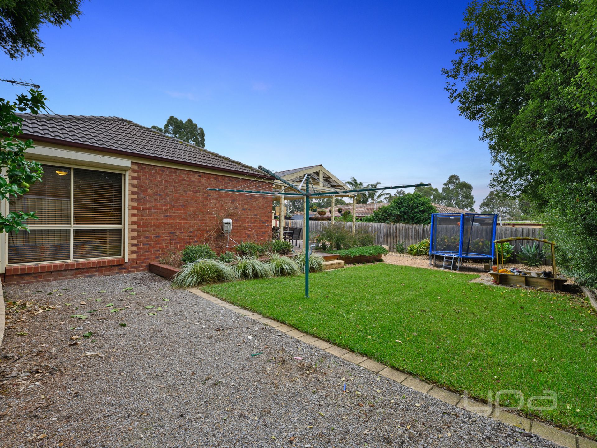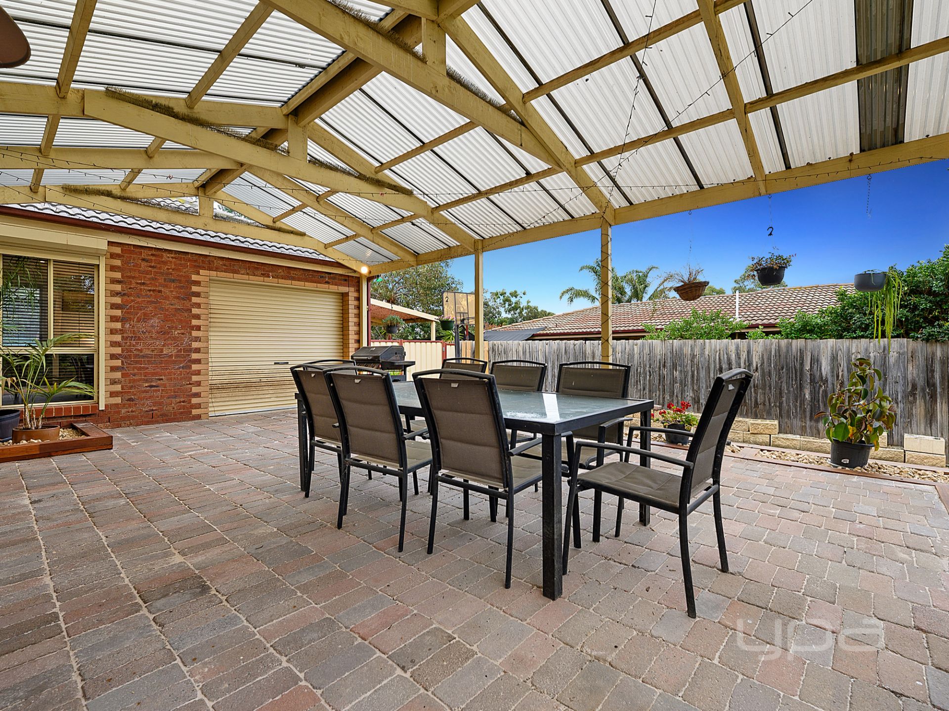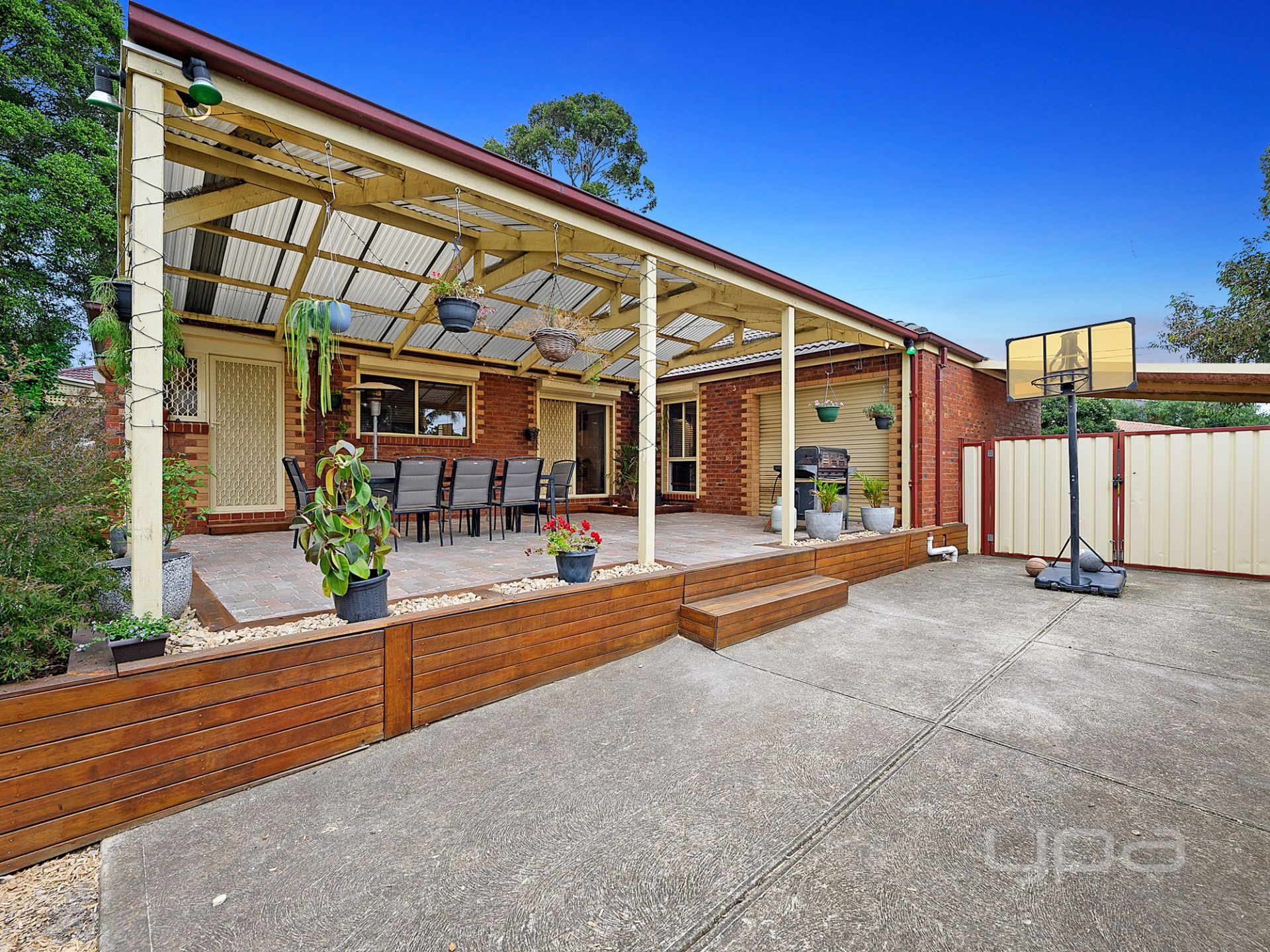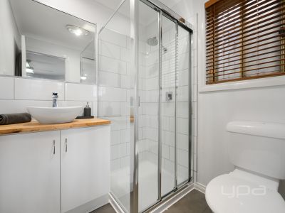 All of this leads out to the spacious pitched roof pergola area with roller door access from the single garage and trimmed with Mirboo Timber planter boxes. Steeping out onto extensive concreting, which is complimented by wide side access, allowing endless convenience. The extensive North facing backyard still boasts plenty of space for activities whilst being surrounded by impeccable landscaped gardens and quality fencing.