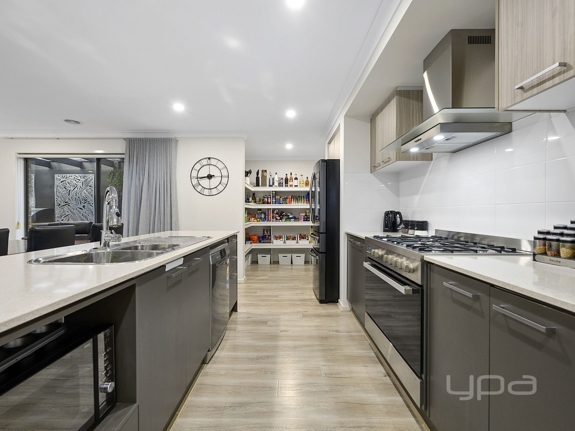The well designed open modern kitchen comes equipped with some of the finest quality fittings such as a huge walk-in pantry, 900mm gas cooktop and oven, dishwasher, 20mm stone benchtops, massive island bench and ample storage space. The family/meals area seamlessly allows the natural light to flow through all living quarters and with the additional kids retreat/second living zone there is room for everyone.
