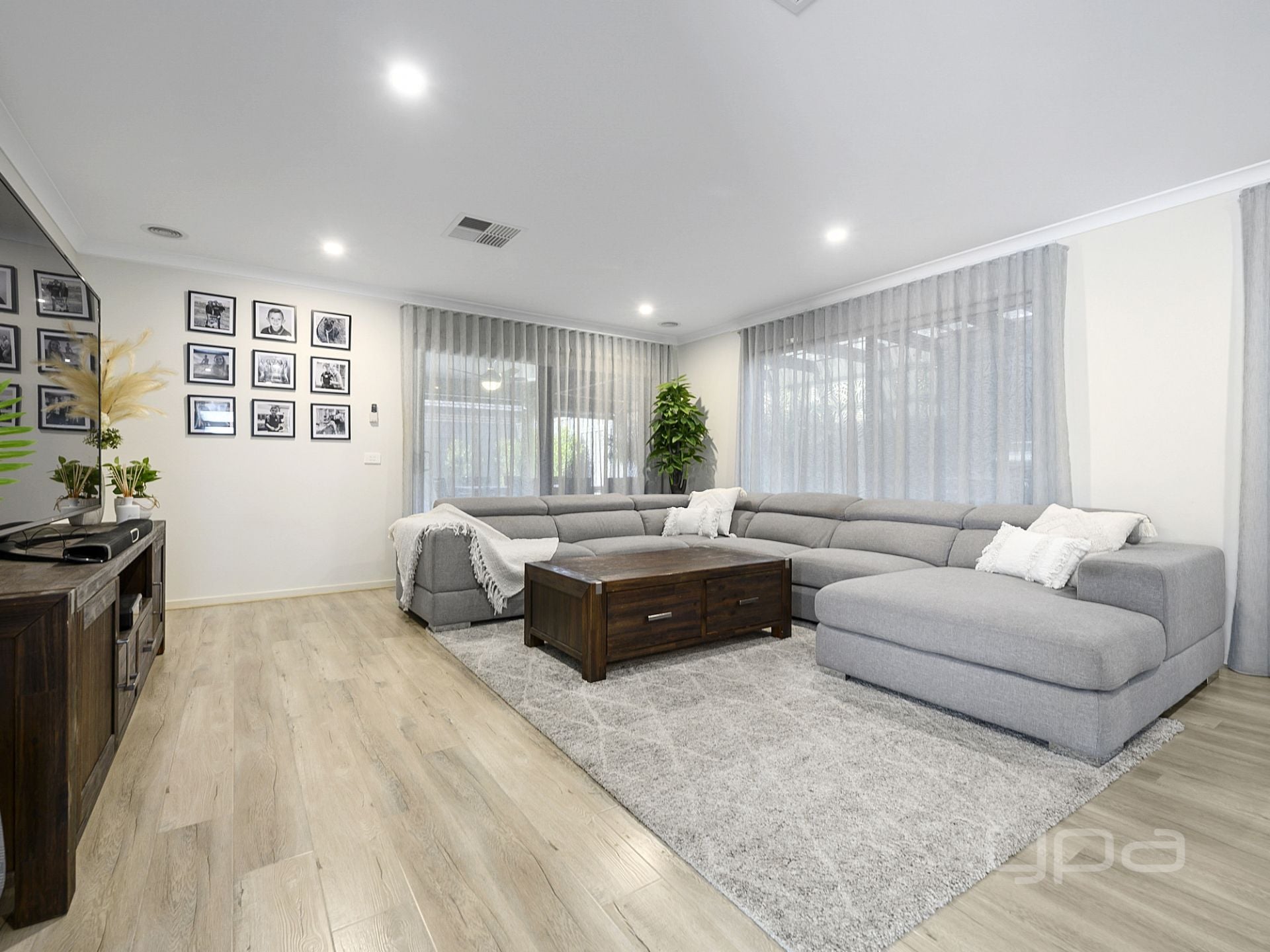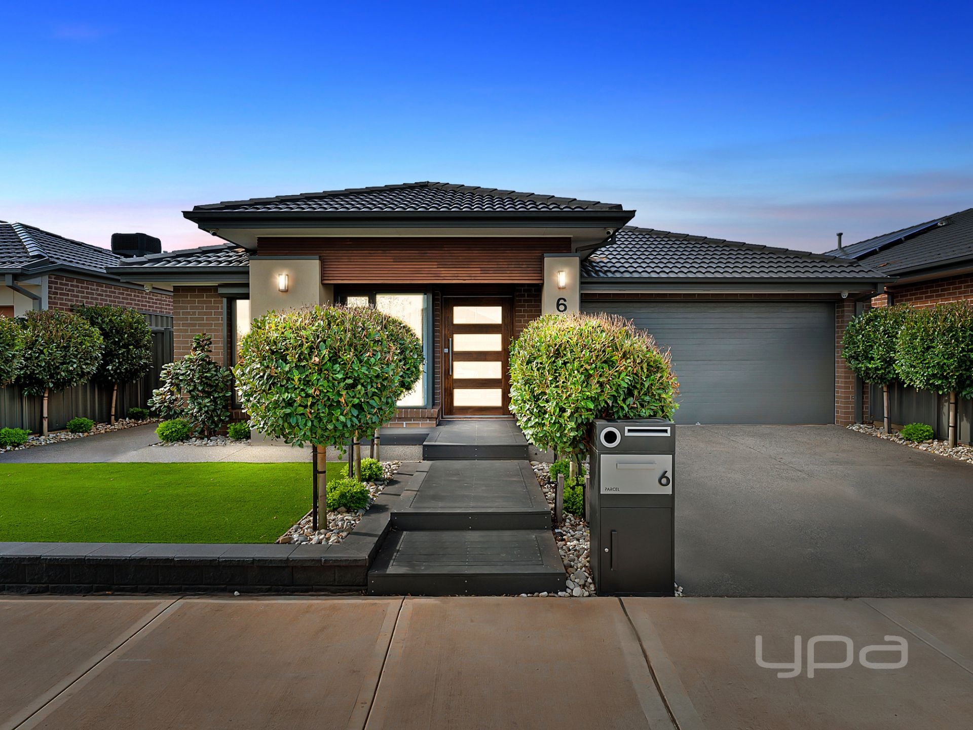 The impeccable front landscaping immediately welcomes you towards this stunning home. Manicured trees, artificial turf and exposed aggregate concrete adding to the luxurious feel of the modern home.