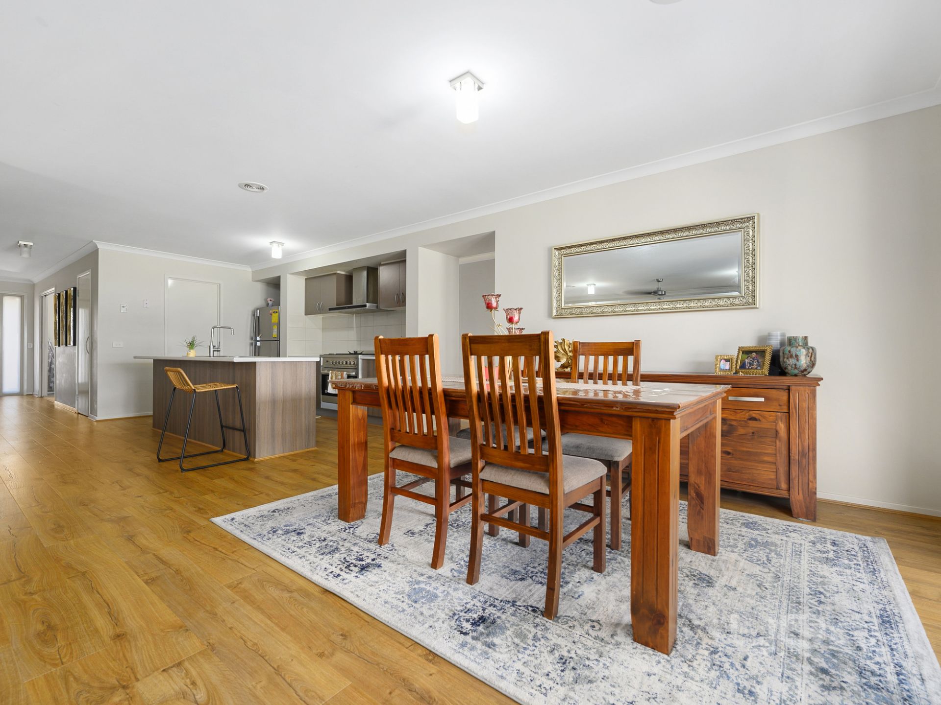 With dual living zones there is plenty of room for the family, presenting a formal lounge on entry and an additional huge open plan living and meals area overseen by the upgraded gallery style kitchen featuring 900mm stainless steel appliances, overhead cupboards and fitted out walk in pantry.