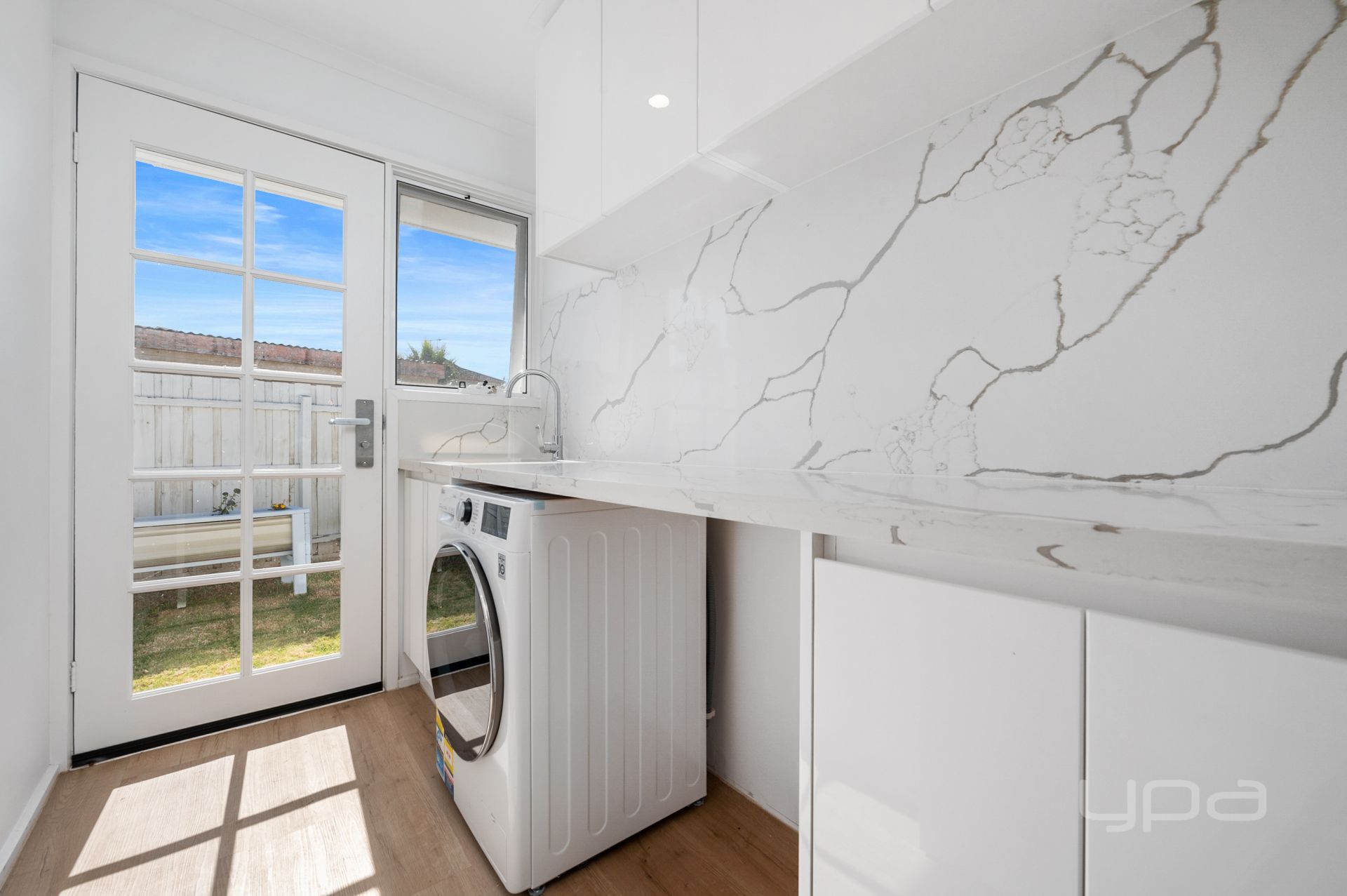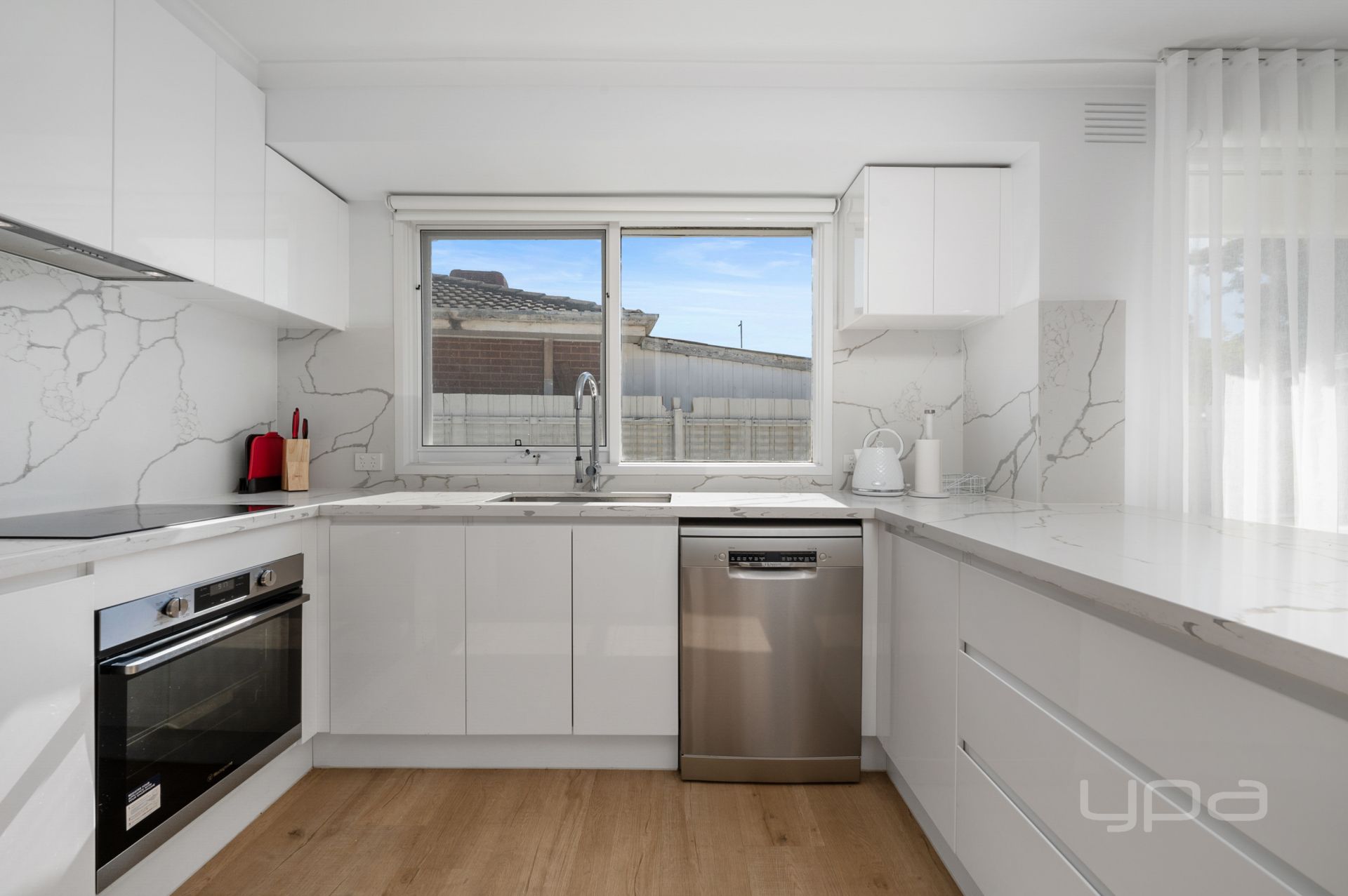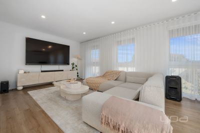 The living zone wraps around to meet the outstanding kitchen showcasing high quality Westinghouse appliances such as an induction cooktop and rangehood (featuring Hob2Hood technology) and 600mm oven which also doubles as an air fryer and a Bosch dishwasher. The stone bench tops that continue up the wall as a splashback and ample bench and storage space add another level of class to this already outstanding zone. The kitchen seamlessly incorporates the meals offering a great space for your family.