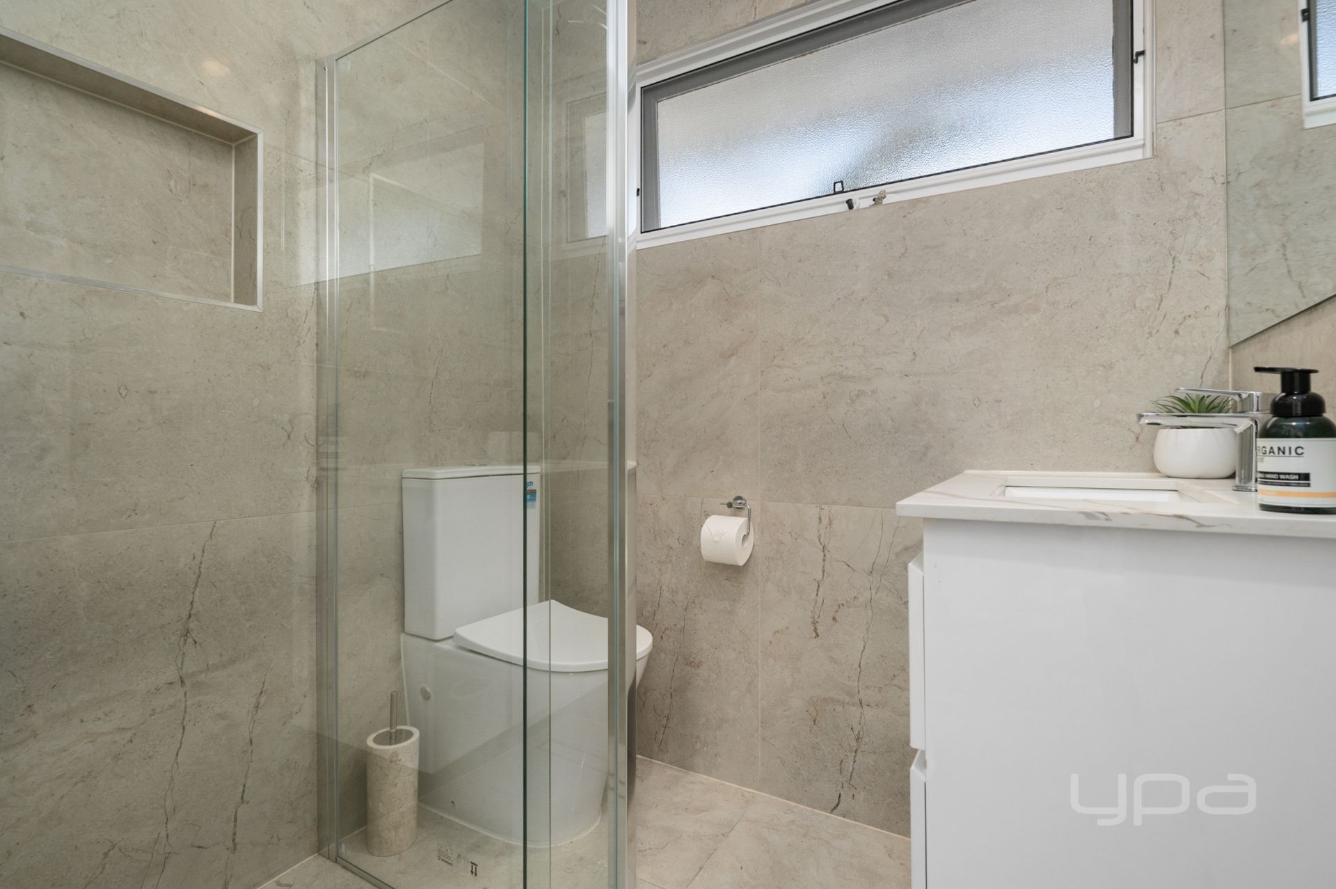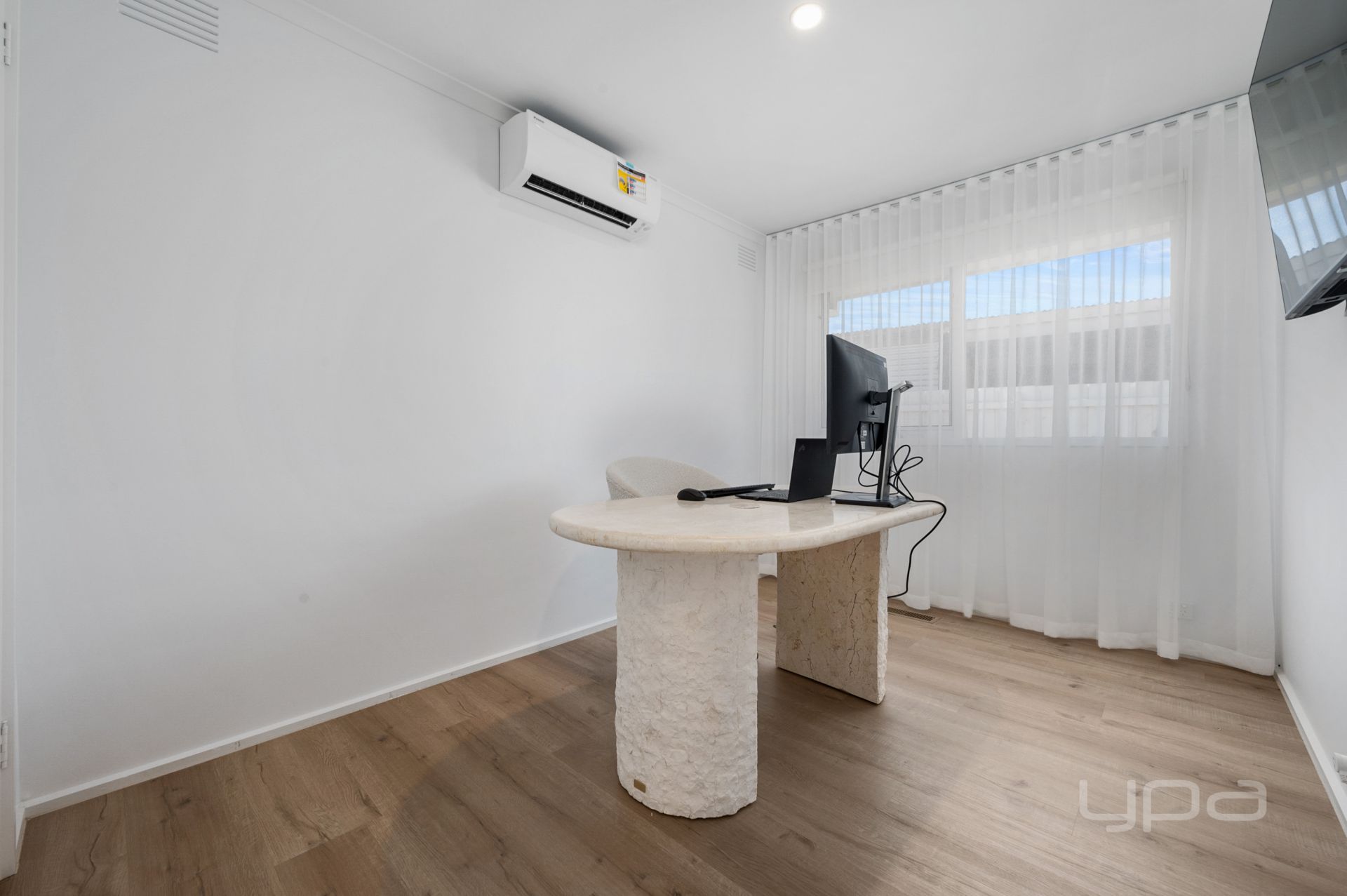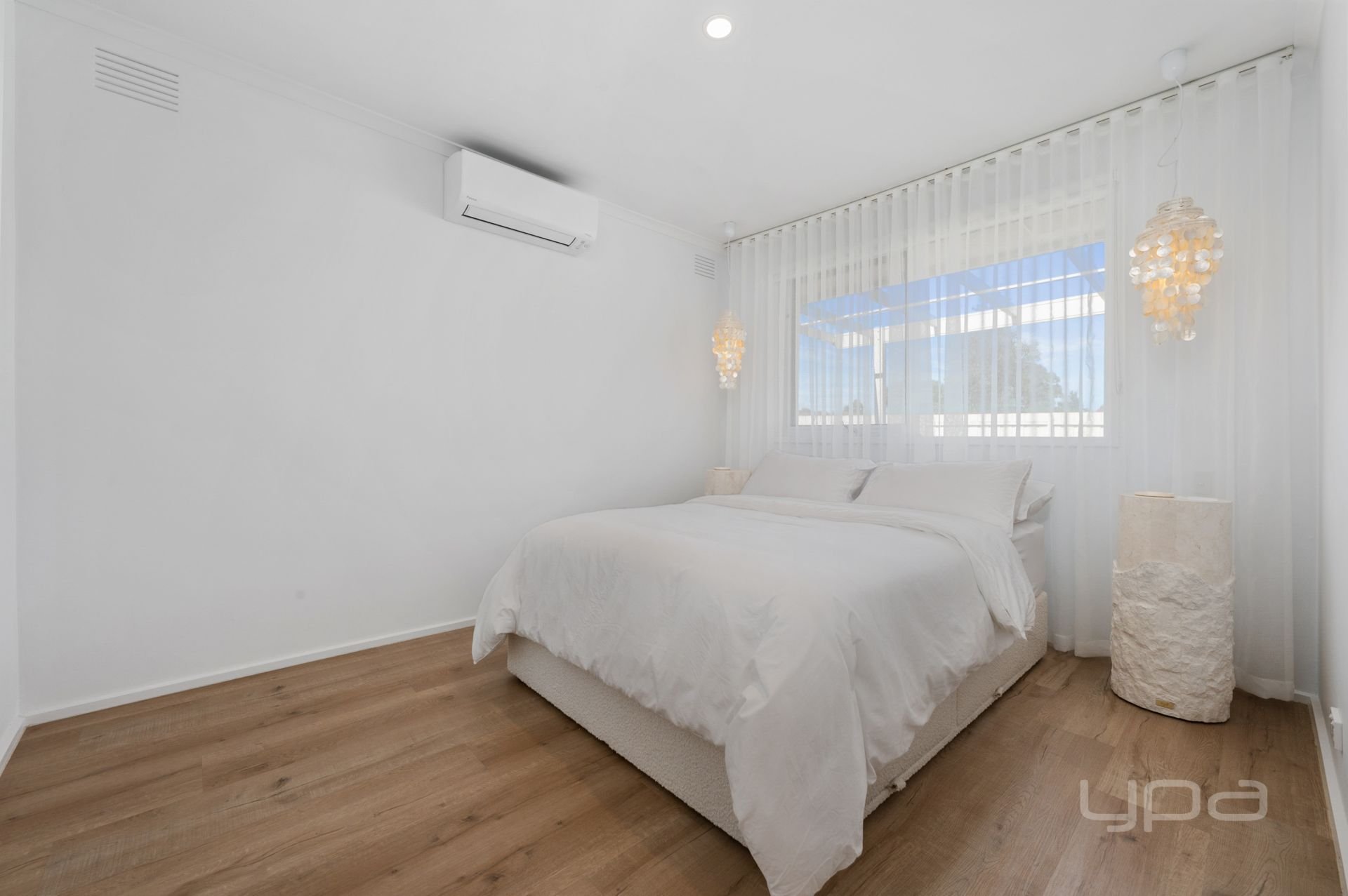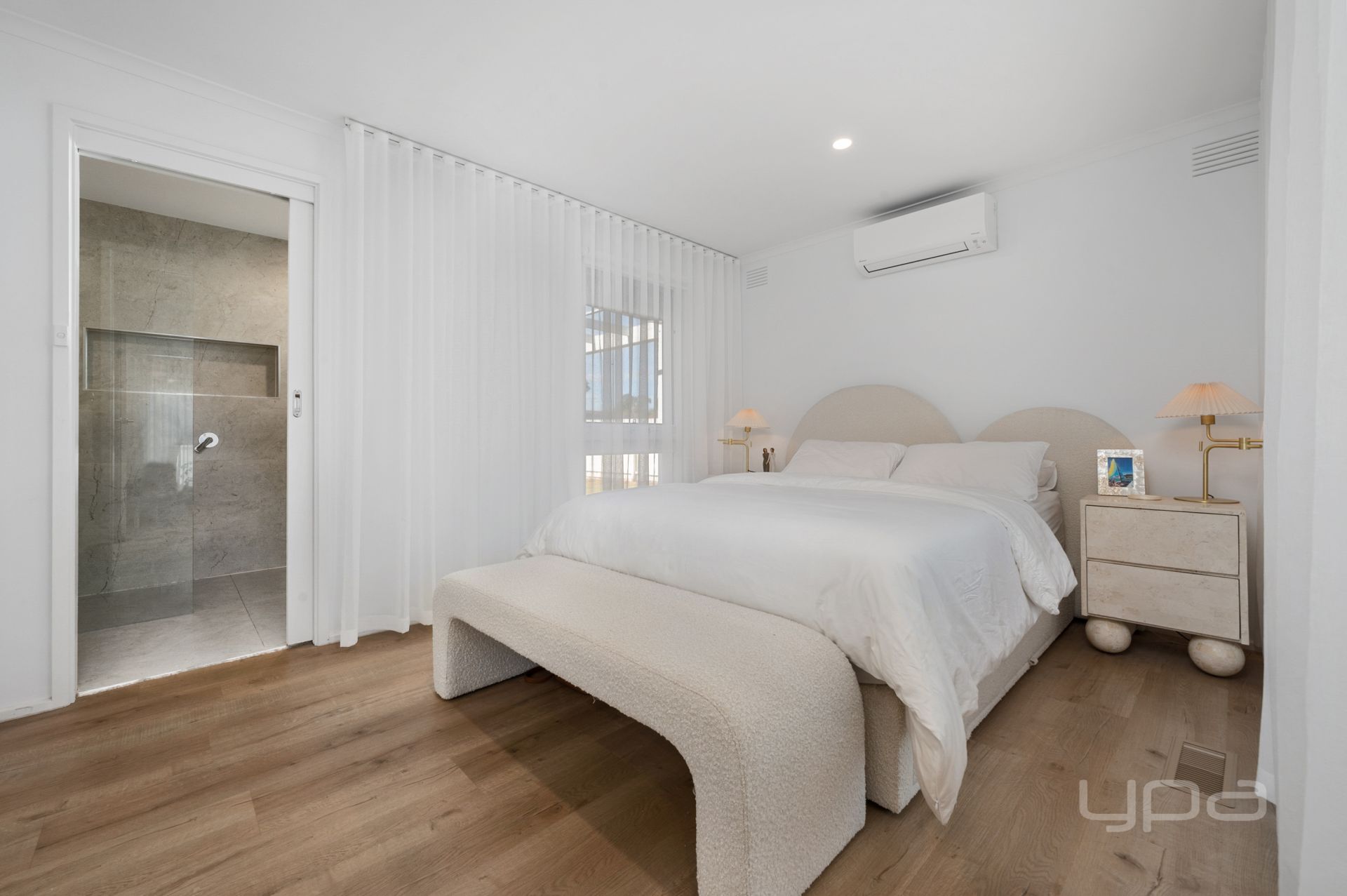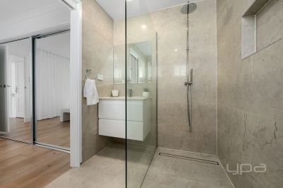 The home consists of three bedrooms, all featuring split systems, stunning sheer curtains and generously sized built in robes. The master bedroom is well appointed and features a calming colour pallet which is further complimented by a gorgeous ensuite with oversized floor to ceiling tiles, tile base rainfall shower with niche, stone bench tops to the vanity and quality tapware. The central bathroom continues with the same quality as the ensuite.