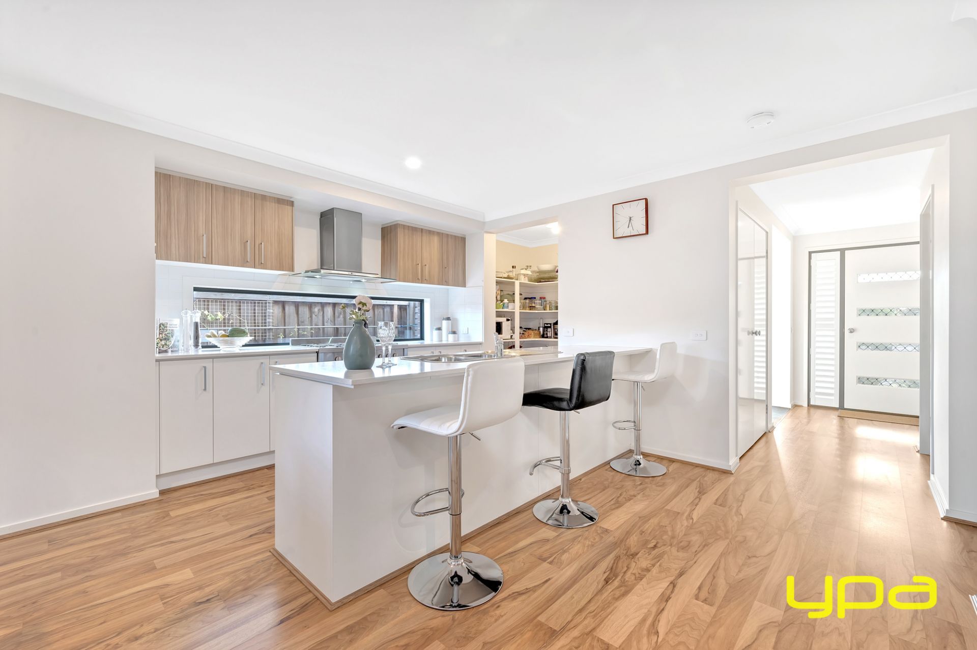 designed with light stone countertops, a breakfast bar, a walk-in pantry, and high-quality stainless- steel appliances, including a dishwasher. Large sliding doors take you outdoors onto a verandah and inviting decked area which gives you a year-round entertainment and leisure area. Choose from two