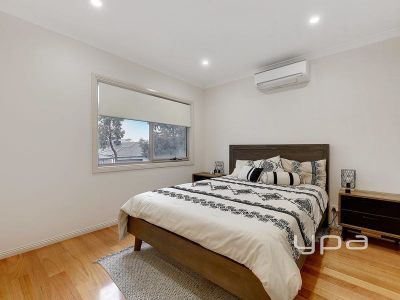 Upstairs affords three spacious bedrooms all with spilt systems, master bedroom with walk in robe and a gleaming central bathroom.