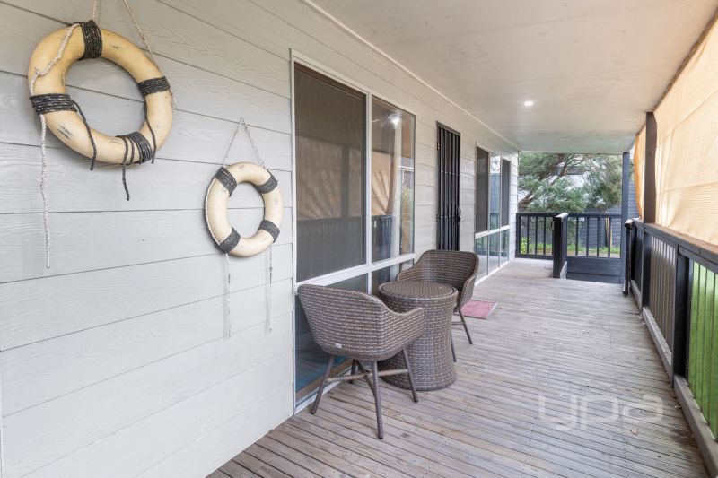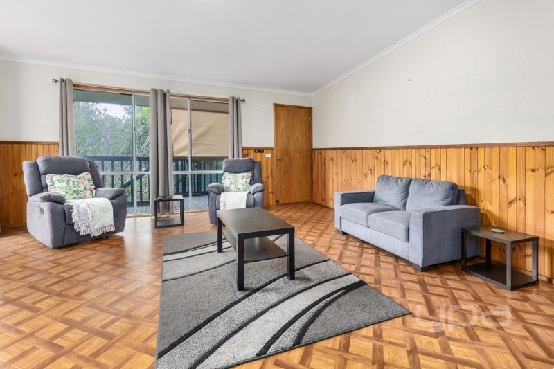 The property is elevated from the road with a deck overlooking the beautiful Tea Trees in the front Garden