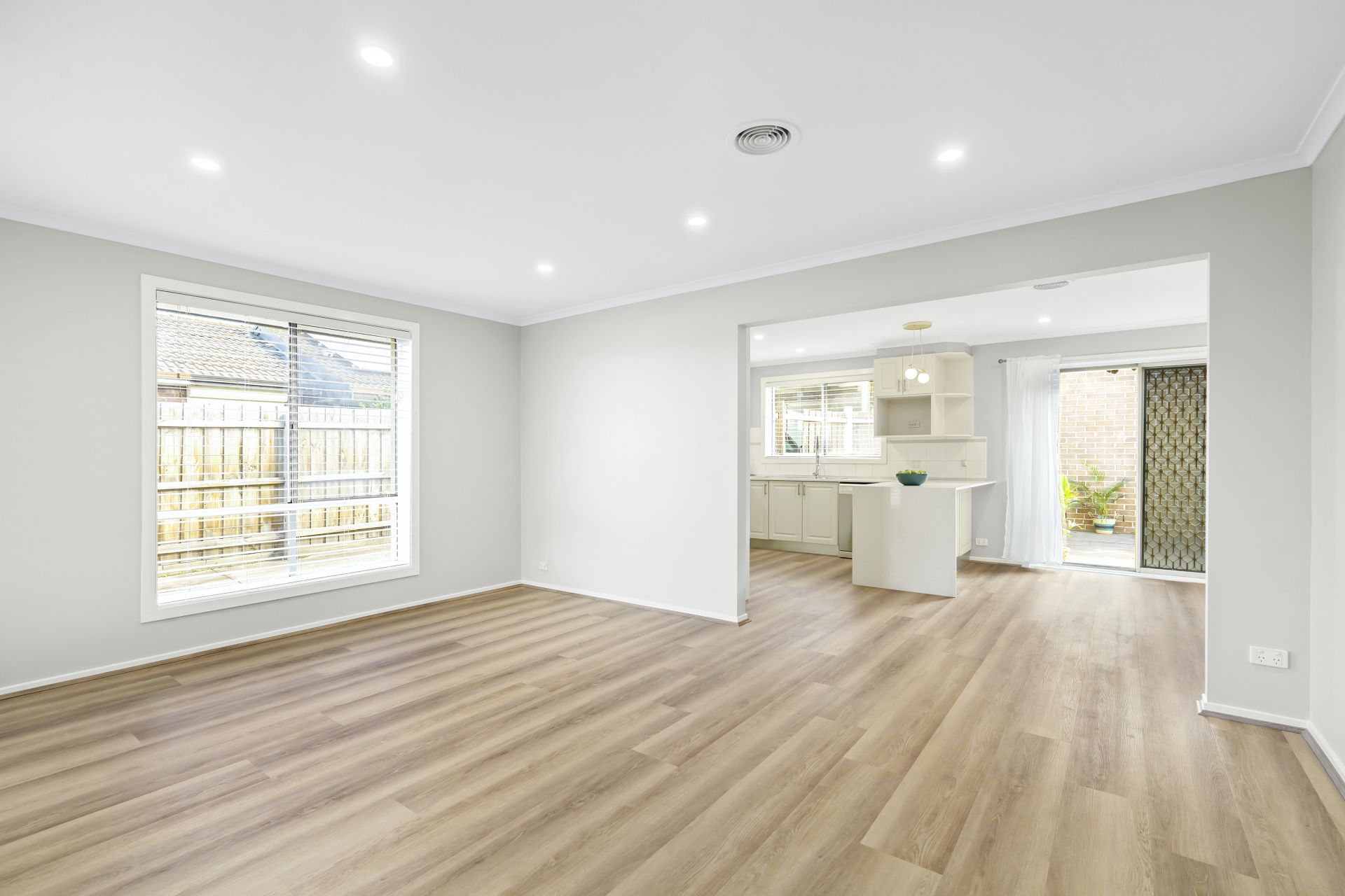 The dining, living and kitchen are open concept and oversized. There is "spill over" entertaining space in the manageable backyard with – added bonus – no mowing required! Here you will also find additional lock up storage.
