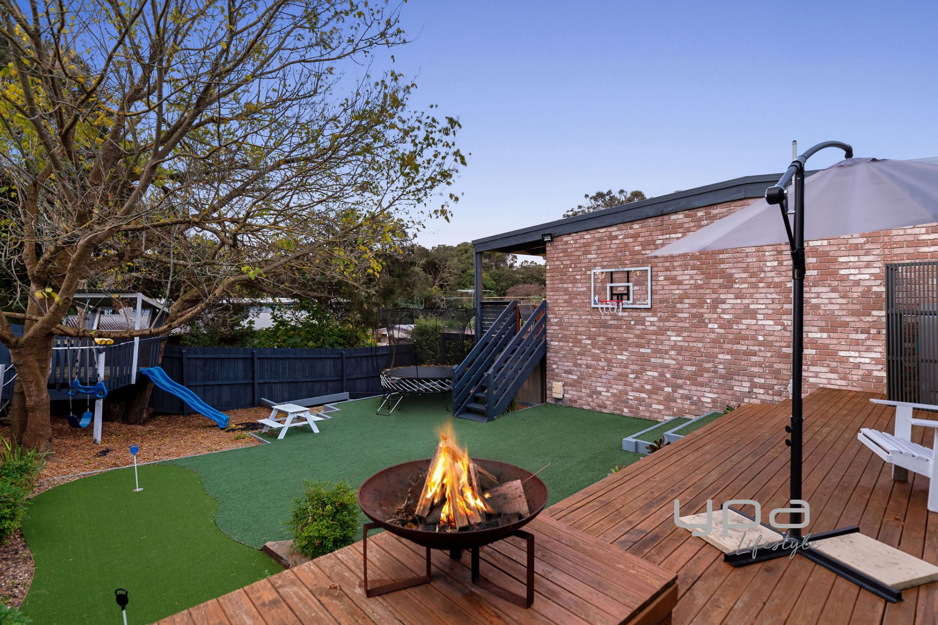· Beautifully landscaped coastal gardens including two large north facing entertaining decks, cosy fire pit, relax, synthetic turf, and mini putting green.