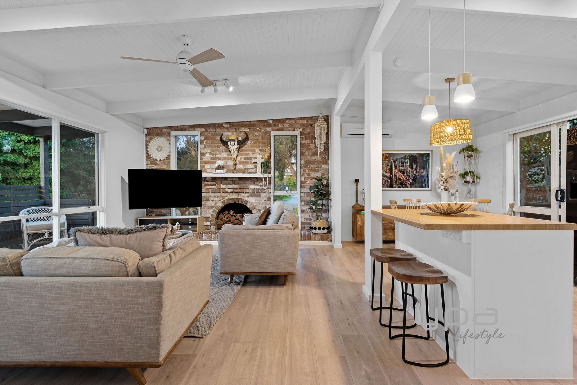 Featuring three lovely bedrooms including a gorgeous primary with fully renovated ensuite & WIR, the home also features a cosy open plan living room, engineered timber flooring, a second family bathroom with soaking tub, built in mirrored cabinetry and walk in shower, and a modern kitchen featuring timber countertops, trendy black overmount sink and tap, and stainless steel appliances.