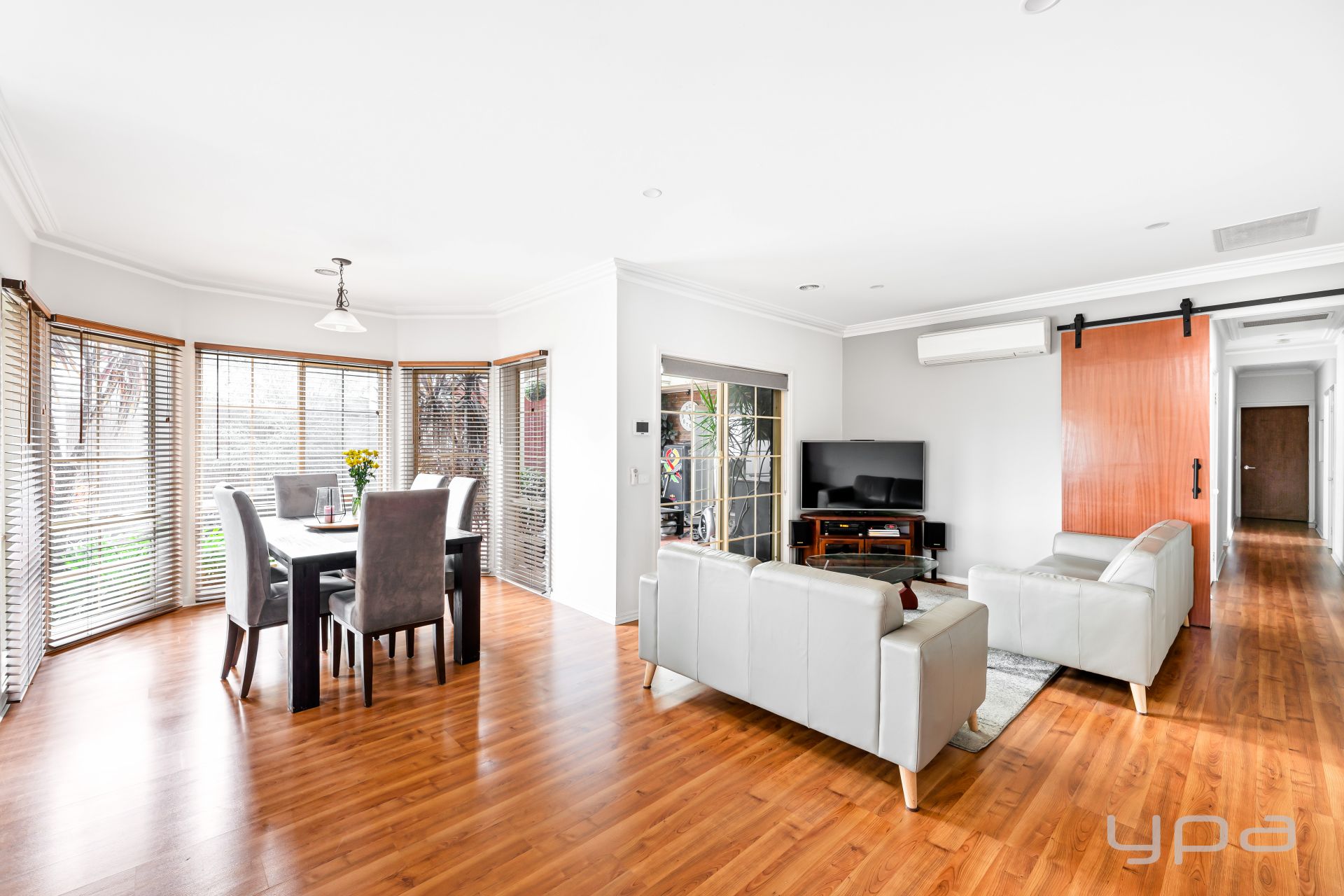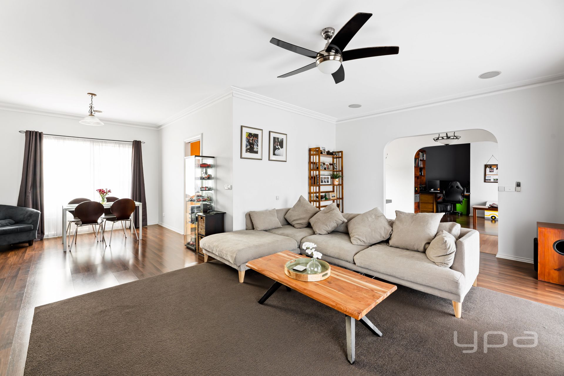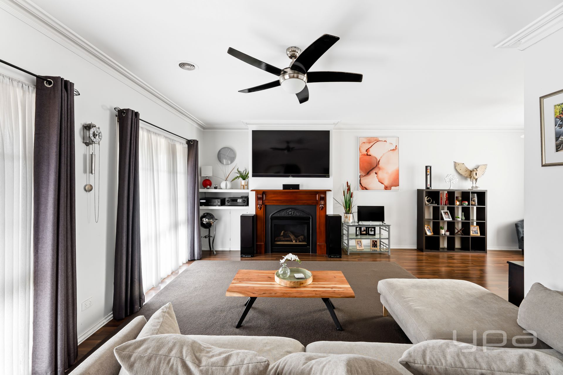 • Formal L shape living complete with gas fireplace