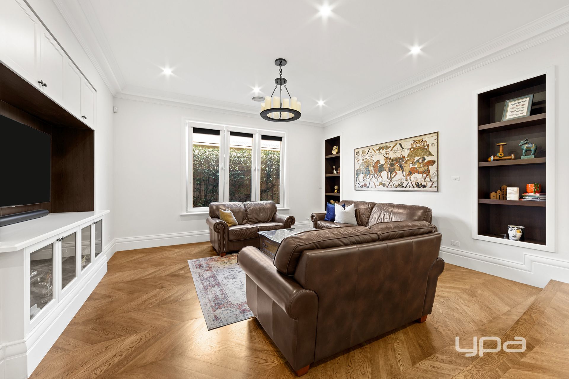 ° Custom joinery throughout home, including inbuilt shelving and theatre units, buffet bar, & study