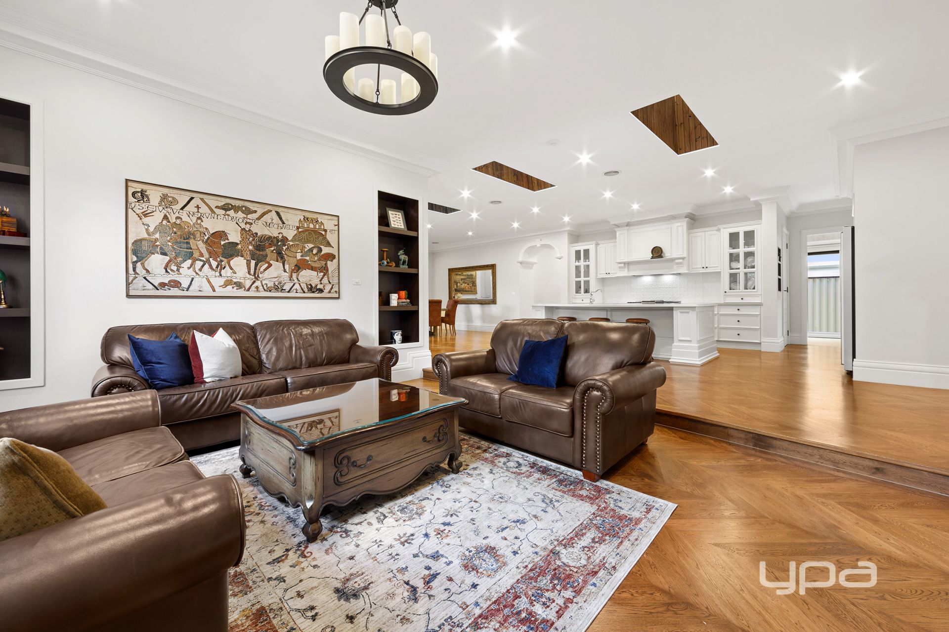 ° Custom cornices, skirting, door architraves, and solid internal design pattern doors add unique touches to this exquisite home