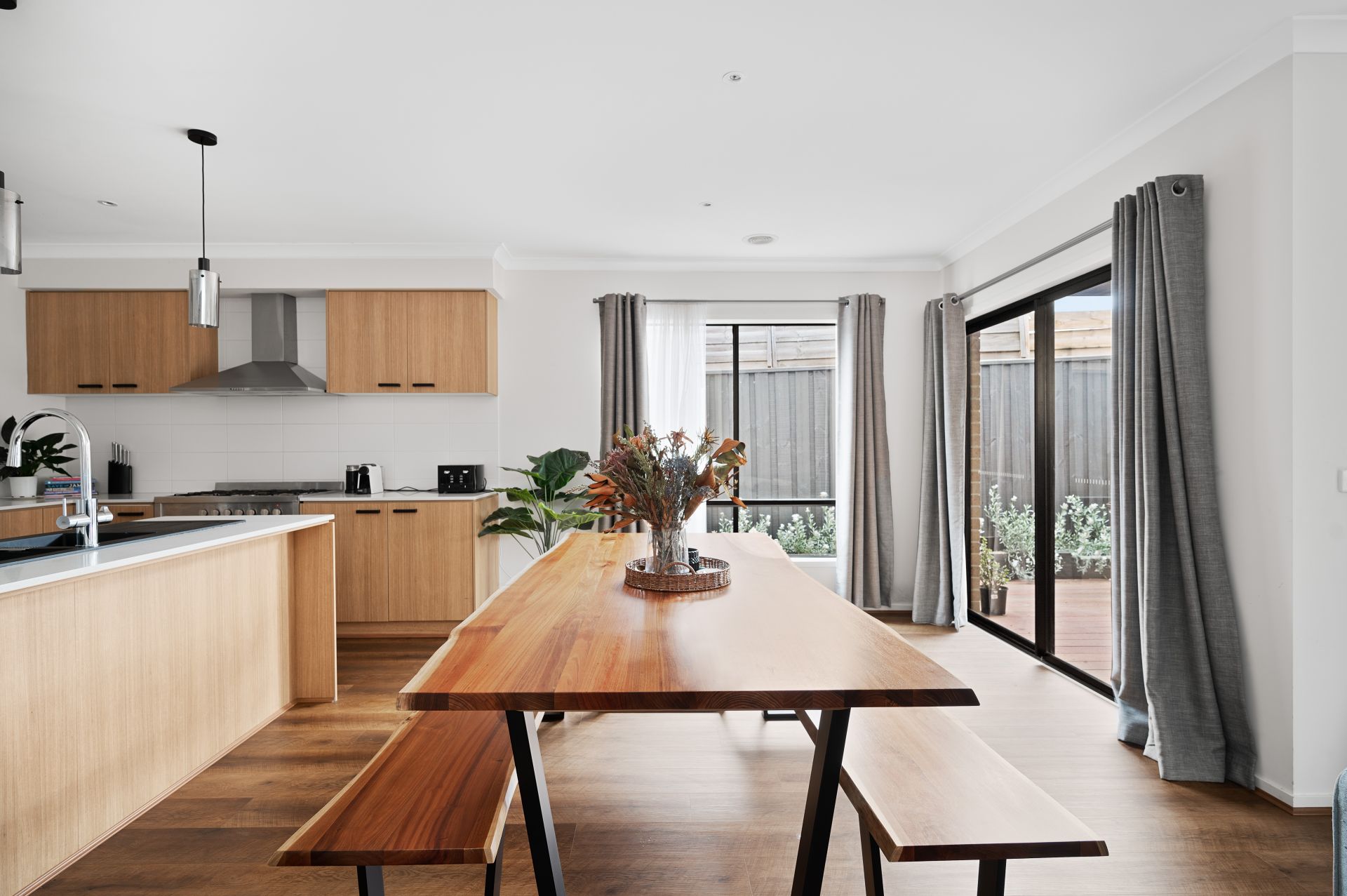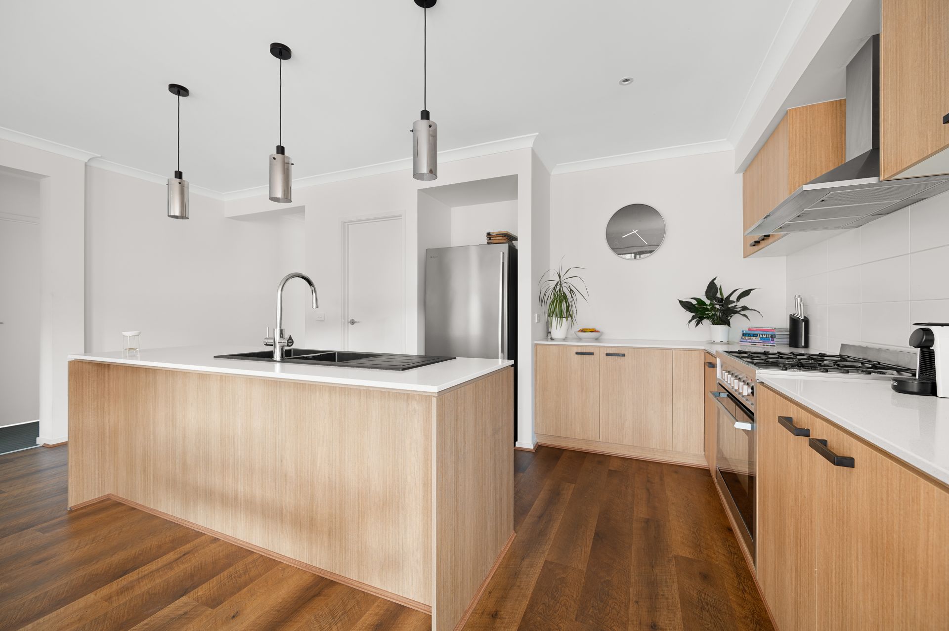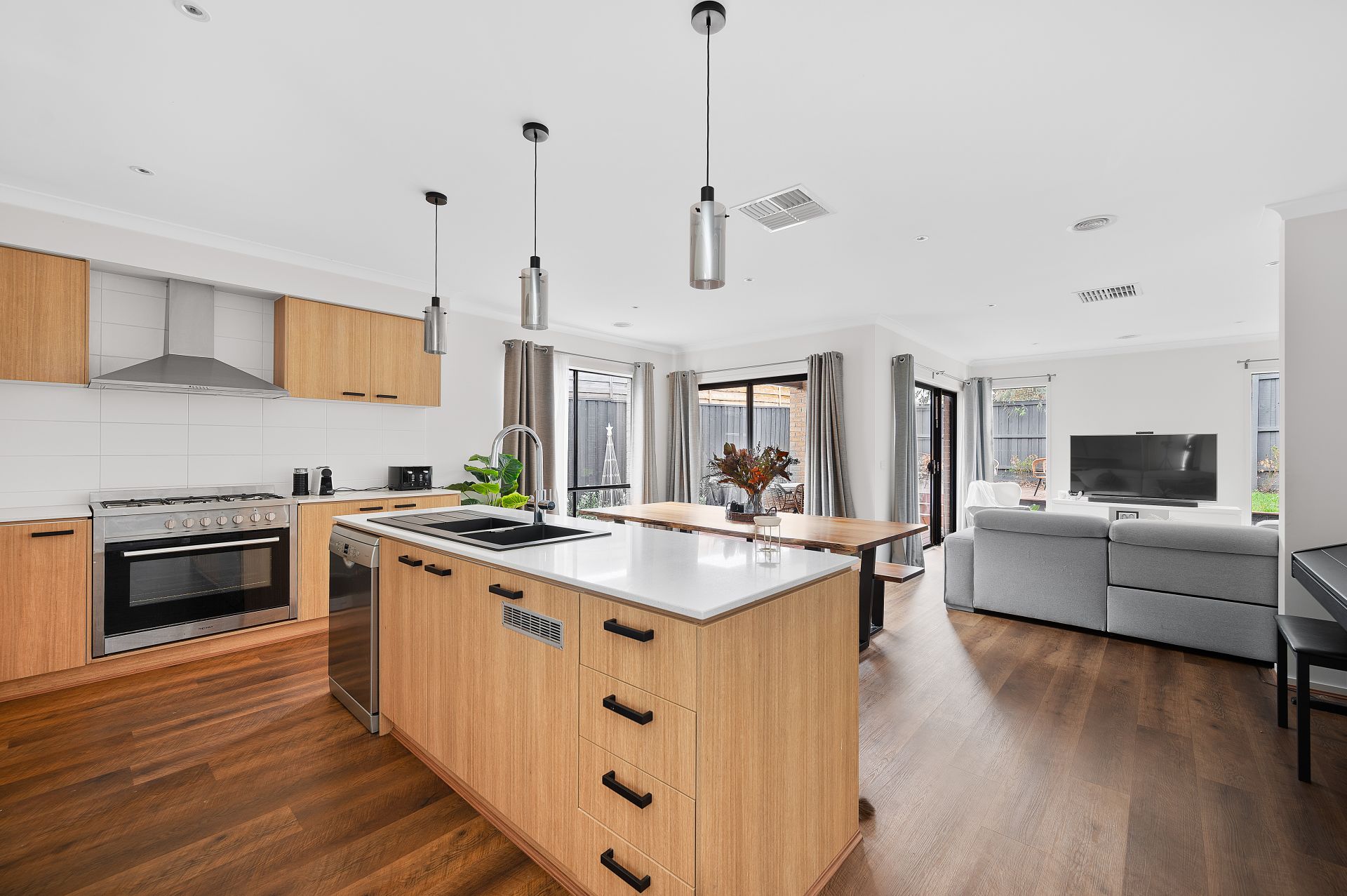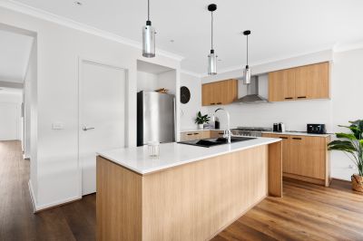 Gourmet Culinary Hub: The heart of the home is a gourmet kitchen that boasts an island benchtop, ample storage space, and a spacious pantry-a chef's dream. Chic pendant lighting adds a contemporary flair to this culinary haven, while the abundance of natural light enhances the ambiance.