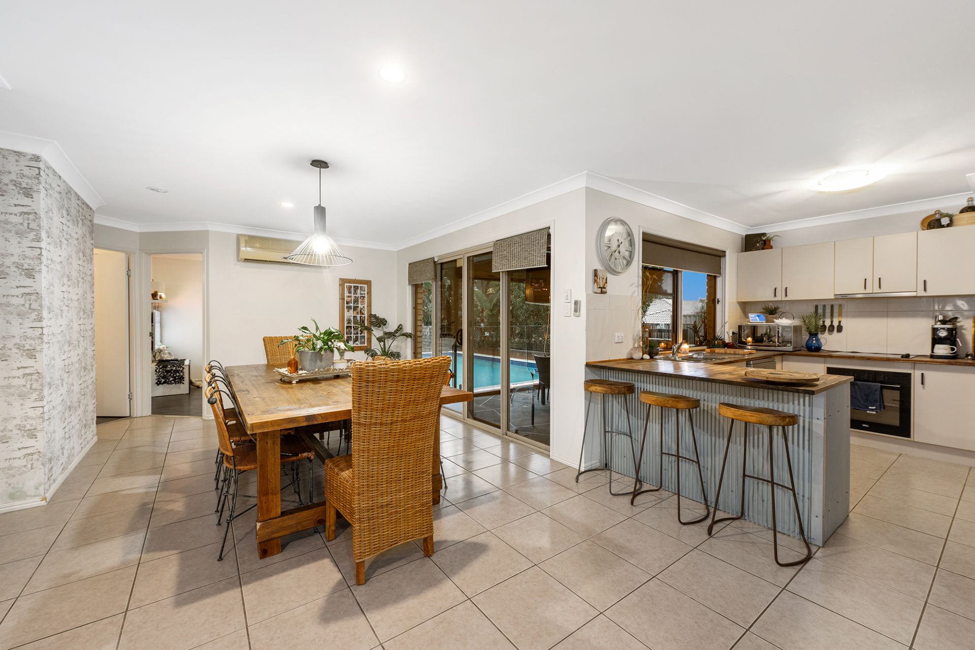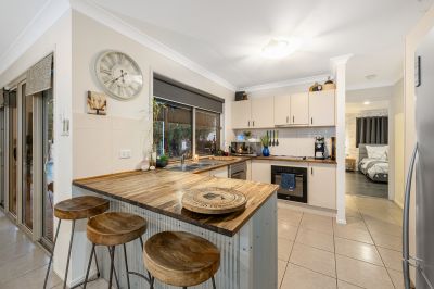 The heart of this home is the immaculate kitchen with an expansive wooden top bench and high-end stainless-steel appliances. An open-plan living and dining area invites quality time with loved ones.
