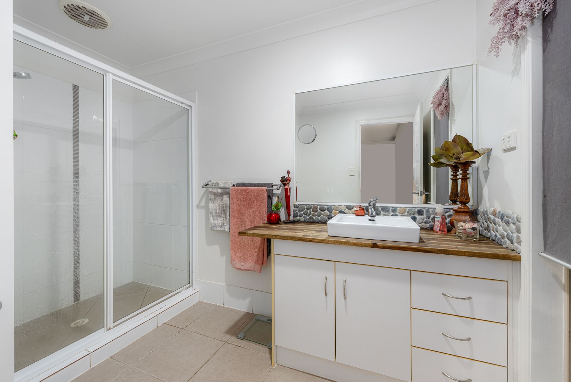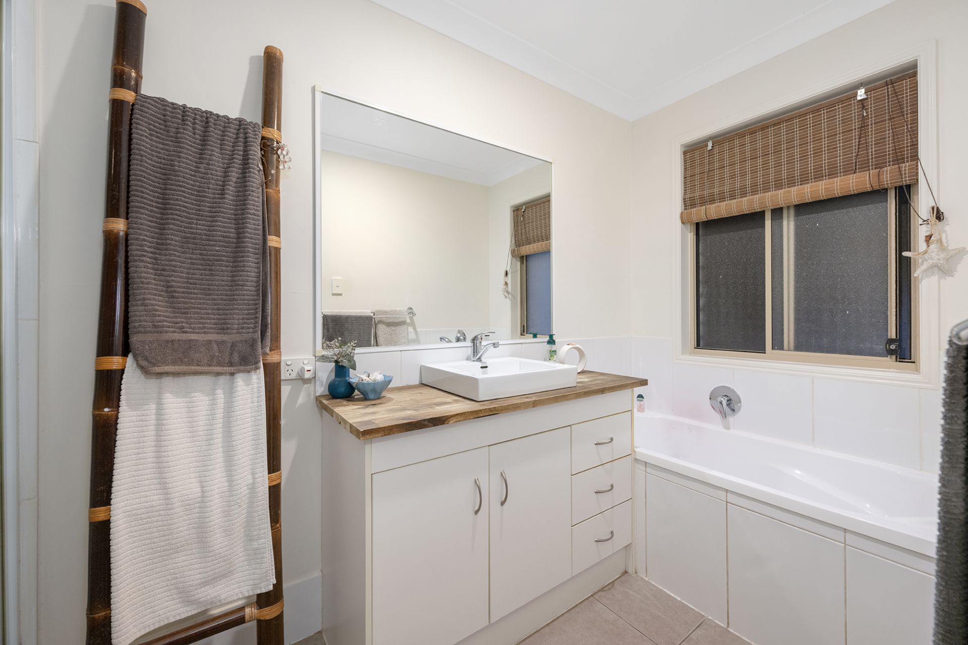 The master bedroom is a true sanctuary with an en-suite bathroom featuring a spacious shower and sleek wooden top. Bedrooms 2, 3, and 4 offer built-in wardrobes, while the main bathroom boasts high-quality fixtures and fittings.
